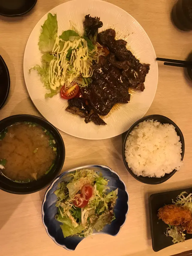 連少食蠔嘅我都覺得正,超級新鮮香草燒雞翼🌿:雞翼係開左半邊黎燒,有心思,燒得好香亦都Keep好多肉汁,而且雞肉都好嫩滑珍寶蟹籽沙律:見到咁大份都嚇左一跳,食得多肉食番呢個清清腸胃就最啱,非常清新,如果蟹柳絲多番dd口感會更加好火炙黑松露帶子卷:黑松露壽司呢個組合都幾新穎,大大件,每件都加左黑松露醬係上面,鍾意食黑松露既一定要試!網燒美國牛仔扒🥩定食:呢個餐真係十分有驚喜,一來佢唔貴,二來啲牛扒煎得啱啱好,七成熟唔會太生,即使肥肉唔多都唔會韌,加埋個燒汁真係超晒班😋Dinner set有埋沙律同前菜跟,好抵最後叫左兩個甜品,好滿足,飽住個肚番屋企!北海道芝士蛋糕:質感幼滑,加上濃厚嘅芝士味,食落唔太甜,唔漏北海道紅豆配綠茶小丸子雪糕:綠茶雪糕用雪米糍嘅皮包住,煙煙韌韌,加埋忌廉紅豆,最佳配搭店員服務都好好,冇水即刻refill,食完就幫手收碟