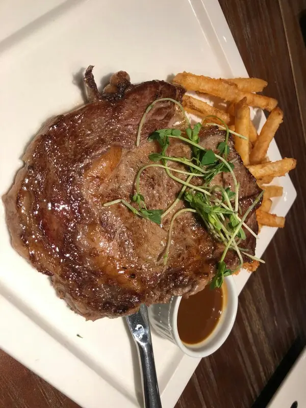 首页餐厅香港荔枝角酷廚美國優質肉眼扒配葡萄酒燒汁跟香脆薯條及時菜
