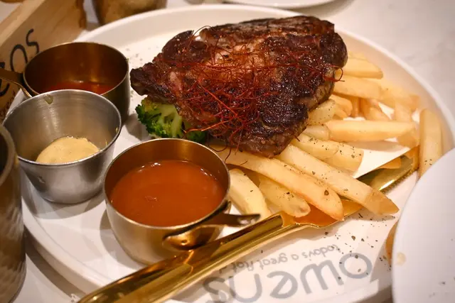 回訪愛店!最鍾意去餐廳會感受到餐廳有心招待客人,想進步,service好,重點當然要好食!Owens 每次都唔會令我失望。🥄香煎三文魚扒西西里意大利飯 原條帶皮無骨三文魚柳,性價比勁高。個人覺得如果魚皮再煎得敢金黃香脆會更正西西里汁帶濃香蕃茄味,醬汁調味不會過甜,意大利飯濕潤。🥩美國安格斯肉眼牛扒肉眼份量不少,叫左5成熟,煎出黎完全我符合熟度。牛扒軟腍多汁,肉眼不多筋。配料焗薯和蔬菜,焗薯香口。🍴白酒煮蜆忌廉白酒鮮甜帶微微酒白,蜆係超大隻沙白,粒粒飽滿無沙。🍫朱古力麻糬蛋糕海綿蛋糕鬆軟,最有驚喜係朱古力粒好滑,味道好濃似生朱古力。朱古力蛋糕唔會好甜,適合香港人🍰開心果麻薯提拉米蘇提拉米蘇係每枱必點,店會定期推出不同新口味。開心果醬滑順,粒粒麻薯Q彈煙韌,不過如果開心果味再濃d就更好。🧋凍薄荷朱古力呢個每次必點!薄荷味夠濃,朱古力味係蓋過薄荷味,但薄荷味又唔會濃到好似食牙膏咁。兩者balance得好好☕️熱香茅生薑蜜女生熱飲養生之選…查看更多