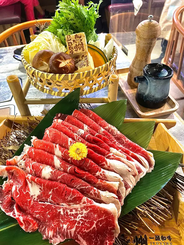 。雖然話晌「食代館」美食廣場內,但其實都喺獨立一個鋪位經營,所以,裝修都幾「骨子」,更擺放咗好多瓷器、清酒,更具和風感。L形兩邊座位,設有唔少卡位,非常闊落好坐,雖然抽風系統用上抽式,但效果佳,食完唔會一身油煙味。睇到門面嘅菜式推介,不其然以為佢哋只賣日式燒肉,其實仲有壽喜燒,晌美食廣場內有呢一類中高檔餐廳都算少有。而點解佢哋店名叫「一頭和牛」呢?餐牌面頁就有解釋,因為佢哋嚴選A5上州和牛為主食材,仲要喺一整頭牛咁買番嚟