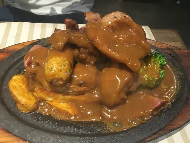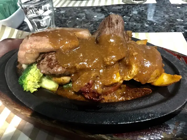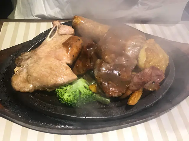 之後去過灣仔既波士頓餐廳係修頓球場格離不過果頭太多好西食根本有排都唔會輪到去揀佢呢間就1966年開業未夠60年歷史年輕過皇后些少同好多豉油西餐一樣都係樓上雅座地下無人把守以舊式扒房黎講佢地算係比較多裝飾同埋就算武肺已經完左都仲有隔板係唔錯既大部份都係卡位設計舒舒服服亦都唔洗搭檯檯面有免費水可以自斟星期日下午無lunch set或者下午茶普通飯意粉就要加錢廿蚊先有套餐鐵板本身就已經係套餐所以今餐只得一個包同湯個紅湯就辣辣地凍飲就好細杯夏天熱辣辣未上食物都已經飲晒個焗豬比起皇后飯店大碟最緊要係好好好熱熱到辣口果隻上面仲有焦燶面炒飯底豬扒都係有切開無菠羅茄味好濃不過都算自然之後上係好耐都無食過既渣渣聲什扒餐仲係好有儀式感咁叫你拎張紙巾擋住再落汁什扒份量就一定係多有豬有牛仲有雞脾同肉腸煙肉本身有薯條仲有個意粉可以跟lunch黎講雖然係單點夜晚價但真係食到好L飽原本都想試下佢招牌既席前火焰雪山可以睇下侍應推架車仔黎點火但真係食唔落唯有等其他食客order黎睇下算數咁都係同一般舊式扒房價錢差唔多無lunch set係比較貴既焗豬一百雜扒二百因為埋黎收錢所以要加一不過算坐得舒服得閒又可以睇下點火侍應反而有後生仔而唔係果種呼呼喝喝既阿叔阿伯級數檯面有水可以自己斟黎飲都算唔錯咁佢價錢叫做平過皇后飯店都叫坐得舒服雜扒超大份味道唔算難食都叫做正正常常四平八隱係比想像中好既…查看更多