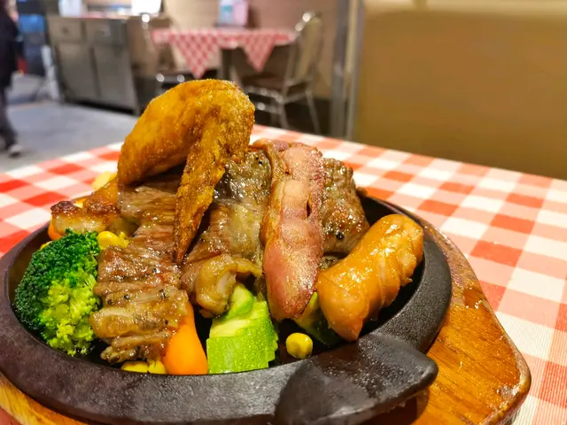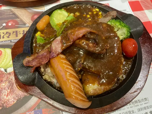 已經很久沒有去過扒房鋸扒了,今天去緬懷一下情懷🤗餐廳位於大廈一樓,需要上一層樓梯,店內地方寬敞,坐位空間感足夠 ,玻璃窗一邊的卡位,可以望到街景,感覺舒適。餐廳用上傳統扒房的紅色格子枱布,充滿懷舊感覺!這裏的食物份量好多,十分適合食肉獸,即使是男性都可以捧腹滿足離開呢!而鐵板餐款式除了有普遍的牛扒、豬扒、雞扒外,還有比較少見的漢堡扒、魚扒和羊架。可選黑椒汁/蒜蓉汁/洋蔥汁。+$22扒餐 可配 牛油餐包🍞+羅宋湯/忌廉湯🥣+白飯🍚/意粉🍝/薯條🍟+咖啡/茶🥤+甜品🍨♡鐵板鮮忌廉淡黑椒汁T骨牛魔王🥩$98看見鮮忌廉和T骨牛這個配搭很吸引,所以就點了一個嚐嚐。T骨牛好大件呢!餐廳建議牛肉點五成或七成熟,我點了五成熟,感覺肉質剛剛好,肉味濃郁,鮮忌廉淡黑椒汁這個醬汁味道也很不錯,把醬汁倒上去牛扒,忌廉加黑淑汁還變了有渾染效果呢!♡美式什扒$78 🥢必點🥢十分豐富!除了有牛扒、雞扒和豬扒外,還有平時什扒餐少有的腸仔、煙肉和雞翼。這裏的鐵板餐蔬菜配料都很多,有車厘茄、西蘭花、翠玉瓜和粟米🌽,而且都是很新鮮,感覺好像降低了一點邪惡感😂•牛油餐包🍞形狀跟平時外面吃的不同,是比較扁身。•羅宋湯🥣有很多配料,除了蘿蔔🌽、西芹、椰菜,還有少許肉粒。有這個size肉粒的羅宋湯我都是第一次吃到👍•忌廉湯🥣有雞肉粒、蘑菇粒和粟米粒🌽,喝下很有口感。•雜果賓冶🍹雜果份量很多,帶點酸甜的味道,好適合吃扒餐時候點的飲品。•雜果啫喱本來目測以為只有啫喱和花奶,誰知道啫喱下原來還有雜果,配上幼滑花奶更加分~•雲呢拿雪糕🍦扒餐完美畫上句號😊不會太甜,淡淡雲呢拿的清香味~♡魚柳薯仔青瓜沙律🥗$33 🥢必點🥢魚柳炸得金黃香脆,而且用上青瓜很有新意,青瓜吃下感覺很清新,配上薯仔、蘋果🍎和菠蘿 🍍,值得一試呢~♡芝士漢堡包🍔$45 🥢必點🥢旁邊有脆薯角伴碟,很足料的漢堡🍔有番茄🍅、生菜🥬、芝士🧀和牛肉,牛肉用上手打牛肉,牛肉非常厚身,肉質有口感,牛肉味濃郁,充滿肉汁!…查看更多