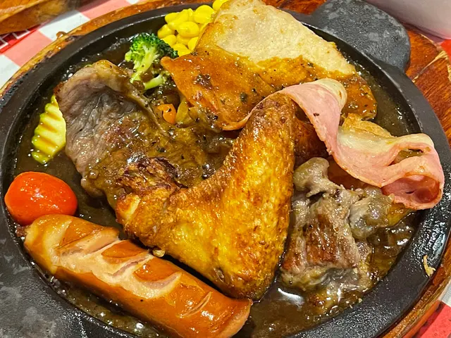 突然好想去鋸扒,係長沙灣搵到呢間餐廳,一於上去食下!一望見餐牌就覺得好吸引,好多款扒類,而且價錢超實惠,大多唔過百,非常大眾化!▪️牛柳 🥩份量好夠,牛柳有兩大件,又厚身,雖然好厚身但肉質都腍,好容易就切開到!牛肉味算濃,肉質幾嫩!鐵板食寧舍好味,侍應倒醬汁上去時聽到炸炸聲,點左蒜蓉汁,有一堆蒜蓉粒俾埋,夠晒重口味!而鐵板上仲有好多配菜,翠玉瓜、甘荀、粟米粒、車厘茄,真係好豐富!▪️美式什扒🐂🐖🐓男友叫左什扒,牛扒、豬扒、炸雞翼、脆皮腸,煙肉有齊!食肉獸必點!豬扒好厚切,口感紮實!雞翼係生炸,勁好味!黑椒汁味道濃,用嚟撈意粉食好惹味!🆙升級套餐只需加$22,必須要加,價錢包括有:餐湯、白飯/意粉/薯條、牛油餐包、餐飲同甜品(雪糕或啫喱),超抵食!餐湯超足料;雪糕係Coco Berry!▪️芝士漢堡包🍔另外仲點左漢堡包食,估唔到咁大個!塊漢堡肉勁大塊,又juicy!芝士勁香,中間仲夾住蕃茄同沙律菜,個包有烘過,咬落有少少脆嘅口感,非常正!好滿足~…查看更多