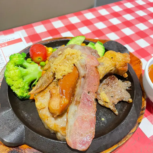 二訪*每次想鋸扒中島都會諗起佢因為真係抵食夾大件❤️—————————————————————5月去嗰時因為疫情無開而今晚中島又再一次想鋸扒所以又向長沙灣進發呢一次中島終於可以如願以償😂難得去到梗係要大啖肉啦食肉前整個沙律開胃先今次就試下個夏季限定嘅Т вone 5成份量真係好癲🤣🤣完全舖滿塊鐵板重點мedιυм佢真係做到俾你 正even配菜都好好味😋什排都係超級大份有豬排 牛扒 腸仔 雞翼 煙肉簡直係食肉獸天堂嫌唔夠仲可以+$20要份鐵板吉列豬柳其實中島都冇諗過佢會咁大塊$20喎 個老闆係咪傻咗啊🤣不過係限量嘅 要食可能要早少少啦+$22仲可以轉套餐 有懷舊花奶啫喱食❤️呢間真心超級無敵抵食不過最好餓啲先去食否則你會飽到上心口😛😛😛—————————————————————⚉ 鐵板淡忌廉黑椒汁T骨牛魔王 $98⚉ 美式什扒 $78⚉ 宮崎吉列豬柳 $20⚉ 轉套餐+$22⚉ 蟹子蘋果薯仔沙律 $22…查看更多