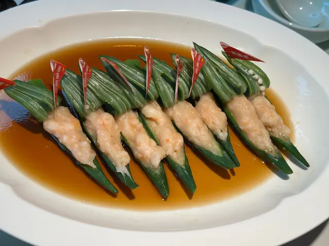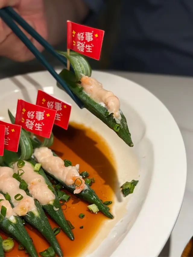 創意除了在裝修設計,當然都會滲入於菜式當中。將秋葵與蝦滑結合,寓意一帆風順,「好事發生」。彈牙的蝦滑🦐與滑潺潺的秋葵,兩者味道與口感和而不同,沒有衝突,主要想吃個意頭吧!