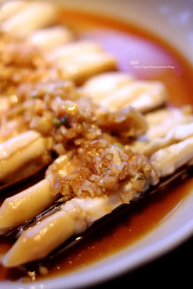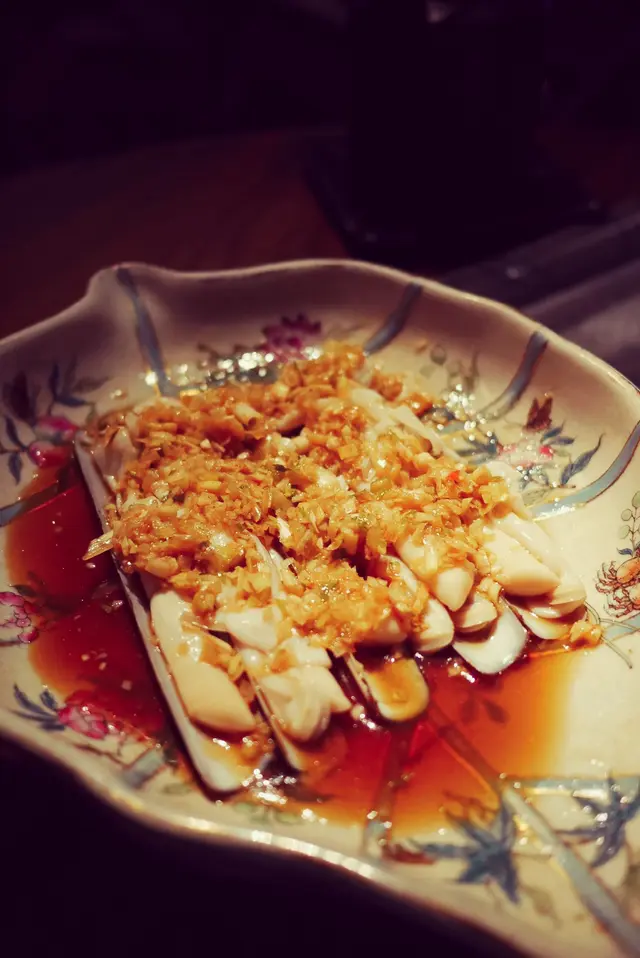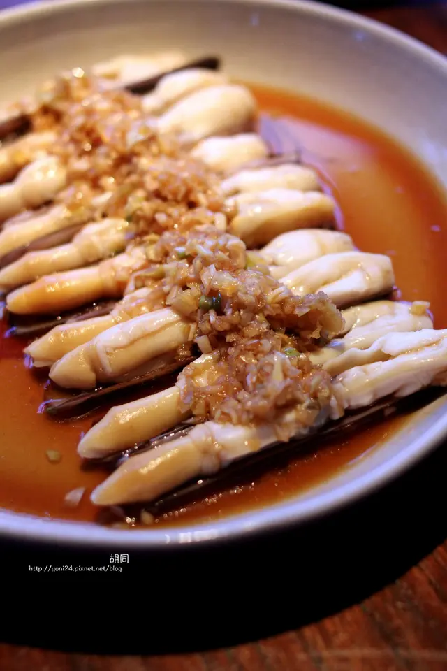 之前聽說胡同晚飯的最低消費是$400。不為甚麼,有部份的消費是用來看風景的,因為這兒有著全港最佳的維港景觀。不過當訂檯時向服務員查詢時,服務員卻說近期胡同已取消了最低消費這個限制,看來最低消費這個措施是按彈性安排的。北京道有專用電梯直上胡同及樓上的Aqur,感覺氣派十足。店內環境實是幽暗,不太易感受到店內環境的鋪陳。沒為甚麽,因為晚上到來要感受的,不是店內的環境,而是外邊的風光。看到這道一覧無遺的維港景緻,真的不需要再用筆墨去形容。是夜無雨無霧,是欣賞夜色的最佳時間。店內有不少外藉食客,大多應是慕名而至,令我猶豫是否應該寫一篇英文的食評來迎合這裡的捧場客。座位用上富有中國色彩的木凳, 不過三號與肯恩都覺得座位坐得不很舒服, 有點搖搖晃晃不太穩固的感覺。至於餐具,也不算得是很有驚喜。大小兩隻碟子沒有甚麼連貫性,筷子也沒有用上筷子座,感覺較為隨意。不過值得一讚的是食店的餐牌,做得別緻有特色。餐牌內的食物名稱更是一絕。可惜不懂中文的外藉食客不能感受到菜式名稱的玩味之處。食店有師博即場表演拉麵團。不消兩分鐘麵粉團便被拉成拉麵。記得在中環的北京樓也看過類似的表演,西方食客看得嘖嘖稱奇,華人食客似是已司空見慣這種江湖賣藝。頭盤很快便送上來。有看開胡同食評的人大抵都認識這道名菜。知道這道菜是冷盤,所以原先會預期這碟菜用上的只會是體積較小的蟶子。怎料原來吃到的,竟是體積媲美西貢蟶子皇的大蟶子!凍吃的蟶子跟熱吃有截然不同的風味,質感更為爽口彈牙。雖然玫瑰酒及醬油泡浸的效果不是很突出,但蟶子鮮味總算將功補過。反而蟶子上面的蒜粒吸收酒及醬油後更有風味。又是另一玩食字取名的菜式,名字真的取得很巧妙。平常很少吃豬喉嚨,之前大抵是在打邊爐的時候吃過。今次可算是第一次正式的點了一道豬喉嚨小菜。外藉人仕肯定更少吃豬喉嚨,不知看到這些貌如外星蜈蚣的異物會否嚇怕?豬喉嚨原先當然不是這種樣子。師傅將管狀的豬喉嚨逐條沿管道逐小距離的一刀一刀劏開,刀功盡現。豬喉嚨爽脆帶鮮,口感一流,半點豬腥味也沒有。蘸上伴碟的辣椒油來吃反而掩蓋了豬喉嚨獨特的味道,建議不需用上甚麼調味,直接把豬喉嚨放進口細嚼更覺滋味。值得一讚的還有那伴碟細碎的蔥絲,一點嗆喉的感覺也沒有,多嚐也不覺膩。吃過冷盤之後主菜便登場,不過冷盤與主菜中間留白的時間略嫌稍長,節奏控制有點失準。兩隻羊腿被端在一塊木版原隻送上來,服務員很快已準備替它拆件,幸好三號眼明手快先替它拿下一張造型照。拍過照後,拆羊工程正式展開。不用自己動手,服務員會為大家代勞。服務員會先從羊腿上撕下小片羊肉分到每位食客碟上,才繼續她餘下的折羊任務,避免食客等得太久才開始進食,這是值得加分的侍餐服務。羊腿烤得很是嫩滑軟腍,加入香草調味後羊肉少了羶味,肉香更為突出。這道羊肉腿做得非常出色,吃慣羊架羊腩的朋友可以轉轉口味試試這道菜。伴羊腿的蘸汁是一種味道很獨特的辣醬,配搭羊肉很是惹味。門口接待處罷放了一排辣椒醬供客人購買,可能就是這種辣醬。蜂巢豆腐,驟眼看就跟在火窩店裡看到的打邊爐配料差不多。"皇袍加身,是否就是跟國王的新衣的故事那樣,其實是空城計?" 三號不禁疑惑起來。近距離看真一點,原來就在蜂巢豆腐的表層上,鋪上一層薄薄的鹹蛋黃漿。正因蜂巢豆腐表面佈滿一層一層的小孔,可讓鹹蛋黃漿充份被吸收進豆腐內層。吃一口豆腐,由外至內都是那惹味的蛋黃香,鹹香超載。至於豆腐本身,脆口異常,是很好的佐酒小吃。其實菜式裡還有伴有少量的蝦肉粒,炸時同樣香口。餐牌內的英文描述裏亦提及菜式食材裡有蟹粉(或蟹籽),不過似乎已被鹹蛋黃味蓋過。甜品點來寶盒一個,裡面有芒果糯米滋,南瓜糕及桂花糕各四件。吃過精美的頭盤及主菜後,原來還對寶盒甜品有點期待。不過當寶盒現身,發覺裡面只是中菜館常見的飯後甜品,有點失望。芒果糯米糍不夠凍,這是敗筆的地方。桂花糕與南瓜糕OK。不太甜,幫助飯後消滯算是不錯。結賬時發覺食店原來是不用收茶錢的。胡同食物有一定小準, 菜式亦顯精緻手功。當然, 手功與環境亦充分反映在食物價錢上面。所以胡同不太適合一大干人聚舊速食, 還是適合兩三知己輕談淺唱, 或是情侶們絲絲細語,用上兩個多小時的時辰, 一邊享用食物, 一邊享受外面風景的美不勝收。情到濃時,跟情人來個深情擁吻, 場面溫馨浪漫。 這夜, 看的與被看的, 都融化了。你站在橋上看風景,看風景人在樓上看你。明月裝飾了你的窗子,你裝飾了別人的夢。          ----《斷章》…查看更多