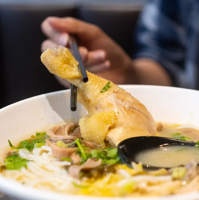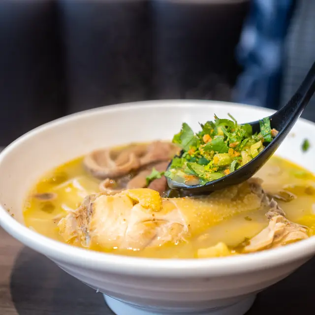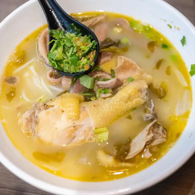有朋友大力推介呢間餐廳 話好好食 稱得上平民米之連 所以今日就去試下啦!朋友叫咗胡椒豬肚雞米線 話湯底好入味 食到最後仲飲晒成碗湯 佢仲話自己平時唔多食雞 但都覺得隻雞幾嫩滑 畀咗相當高嘅評價!我唔係好食辣同內臟 所以叫咗竹笙雲吞雞泡飯 湯底清淡得嚟又夠味 本身唔鍾意飲湯嘅我都想飲多幾啖~餸嘅份量都好多 有好多芫茜 雞就有5、6嚿 有大大隻雞脾好開心 最後食到好飽!但除咗雞脾之外其他部位都唔算好嫩滑 而雲吞就得2隻 唔多夠喉 所以希望可以調整一下兩者嘅比例就好啦~…查看更多
