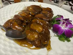皇仁舊生會等左幾年先食到一啲都無誇大,首先要符合以下條件:1.首先你要約齊11個朋友因為中菜部係不接幾位的散客,只接受一圍圍的訂檯。2.其次要認識就讀該校的舊生才可以幫忙訂位。3.更重要有耐性等待,因為訂位一般要最少三個月前呢, 因為每晚招待的食客不多。 但是可以好肯定告訴大家等待是值得的。是晚預訂了$5198 金玉滿堂宴(12人套餐)翡翠鴿片鴛鴦蚌仁第一道菜已經色彩繽紛,青黃椒,花枝,貴妃蚌等的組合,單看顏色已胃口大開,伴碟嘅橙同青瓜一點也不馬虎,大顯廚師刀功,切得厚薄均一,擺放得整整齊齊。花枝炒嘅時間拿捏得非常好,非常爽口。炒鴿片頗嫩滑,沒有想像中肉質粗糙,實在意料之外,味道不錯。當中放在底部的微辣爽脆子薑,令這道菜的味道更豐富。糖桂花美國桶蠔這道菜令我立即想起流浮山的蜜餞蠔,是晚的桶蠔比流浮山的多了一份桂花獨有的香味,各有風味。12隻桶蠔每隻均十分飽滿肥美,份量不少,整齊地排列在碟上。桶蠔先經油炸,外皮鬆脆,然後再配上清香桂花蜜,這個配搭令人不自覺地想多吃一點。原隻鮑魚佛跳牆單看湯上的鮑魚串燒,已令我們驚嘆不已。侍應姨姨撈起來的湯渣,當中有一隻如德國豬手般巨大的金華火腿,大家不期然想到這個真材實料的湯品味道一定十分美味。果然湯底濃郁美味,侍應姨姨告訴我們這款湯品用上大量的食材,共煮了八個小時以上呢,金華火腿的味道,完全融入湯中, 再加上鮑魚串,難怪這款湯的味道是如此難忘,不知不覺飲了三碗。。。。。椒鹽陳皮中蝦以油泡過的中蝦,肉質彈牙,特別是蝦殼以椒鹽的方法炸得香脆可口,絕對可以整隻吞下去。可惜陳皮味略嫌不足,而且不知何解椒鹽是甜味的,我們一行十人也覺得這道菜實在太甜了。並立即向侍應反映呢,成為這晚的敗筆。柚皮生扣鵝掌12隻炆過的鵝掌整齊地圍繞碟,加上蝦子調味,鵝掌亦香軟腍滑,伴着碟中的兩大件厚身柚皮。柚皮口感鬆軟,雖然不是珍貴的食材,但是製作的方法十分繁複,在香港並不是很多地方可以吃得到呢。製作時要先把柚皮燒焦外層,然後用刀刮去或用手擦丟黃色外層,沖洗乾淨後再用水泡浸,功夫繁多,所以在家不容易做到,能夠吃到這道菜十分幸運,而吃到好吃的柚皮更是難得!脆皮炸子雞炸子雞的上碟的形態十分有功架,外皮炸至金黃色,充滿光澤,皮薄香脆,雞肉嫩滑。肉質一點也不乾,還保留了部份嘅肉汁。還有炸子雞下面的子薑,也有畫龍點睛之妙。煎焗班腩這道菜一上檯,美極鮮味立即撲鼻而來,斑腩炒得夠鑊氣,而且相當惹味,薑蔥也很入味。腰果露湯圓 一端上桌就聞到香濃的腰果味,單看相片已看到十分幼滑,腰果磨得十分幼細,而且甜度適中,香甜幼滑。芝麻湯圓外皮煙韌,芝麻餡美味,令人急不及趕緊舀一匙來品嚐,如此美味的甜品令今天晚上畫上完美句號。後記今天晚上真的十分滿足,荷葉飯和炒麵也是高水準之作,不過眼闊肚窄。值得一讚飯後水果的西瓜也附上了梅粉,實在細心!…查看更多