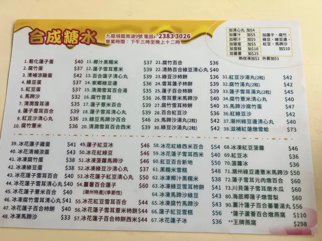 呢間合成糖水喺九龍城好出名,呢日經過九龍城所以去食,佢喺九龍城已經好多年,應該冇咩人唔識,最出名係佢哋嘅清心丸,今次我去都係食佢嗰個腐竹薏米清心丸。