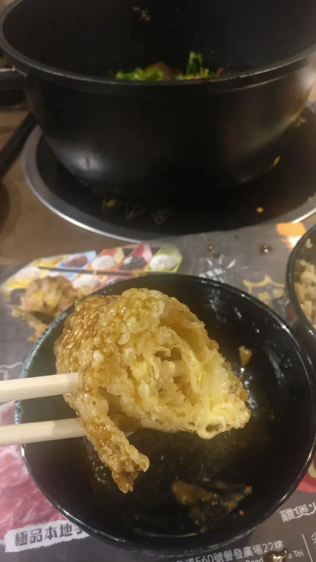 今天正值大寒﹐一定要吃點冬天的人氣食物。打邊爐和雞煲就選了雞煲了看到吞POT在佐敦開了第三家新分店﹐相信人流可能較少﹐就來舒適吃個晚餐。一踏出升降機就看到店裡情況﹐石屎風格的裝潢有點古舊風﹐感覺挺特別。石屎牆壁加上木桌子﹐感覺很配!碗碟也有點心思﹐有點藍藍的小點綴。點了個重慶麻辣雞煲(小辣)﹐一上桌就可以直接吃﹐不用再等它熟透。打開蓋子就芬香撲鼻有點芫荽放面﹐賣相不差!雞不是肥瘦適中﹐咬下去比較Juicy﹐也很嫩雞煲的重慶麻辣汁不會太辣﹐帶點甜﹐也帶點香料味道。口感﹐味道都很有層次﹐讚其他小配料也不能放過﹐洋蔥夠甜﹐芫荽很香﹐也夠吸汁。所以另外再追加了一碟!吃肉也就需要點清新來平衡一下﹐所以就點了吞POT招牌沙律。這個沙律由蟹柳﹐蟹子﹐蘋果﹐生菜絲組成。有蘋果絲的沙律在香港實在少之又少﹐要冒著會生"秀"的風險還真夠POT所以也試試這個沙律。沒想到蘋果和蟹柳一咸一甜的組合並不會很奇怪﹐還很有新意呢加上生菜絲和蟹子﹐還真有中和雞肉的油脂的效果。壓軸的就是它 - 自創爆芝響鈴﹐ 這個確實是最驚艷﹐響鈴一層一層都炸至很鬆化﹐中間可看到有點芝士。起初還沒吃到以為芝士很少﹐誰知咬到中間真的會爆芝它比空口吃芝士還更芝士這個想給六星  飲品點了個西柚特飲 $34 ﹐是看到旁邊的其他客人點了﹐就覺得$34並不貴。因為真的很大杯!後來發現味道也很好﹐沒有化學香精的味道。飲這種甜飲品就怕是越飲越口渴﹐這個完全沒有這問題。而且西柚味是很足!推介!埋單兩人 $418﹐在高水準的餐廳來說是超值的 …查看更多