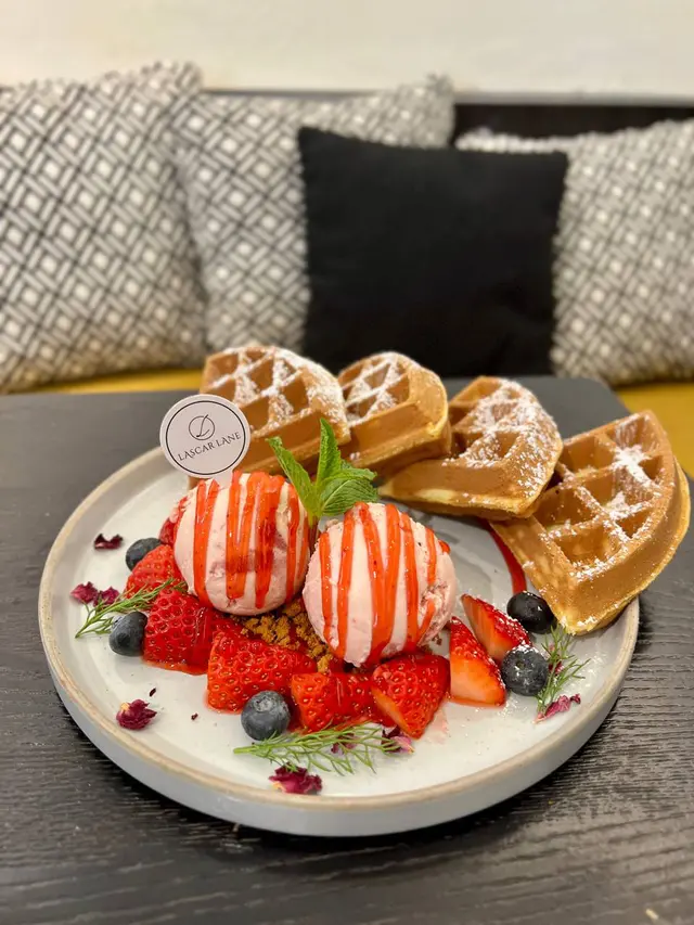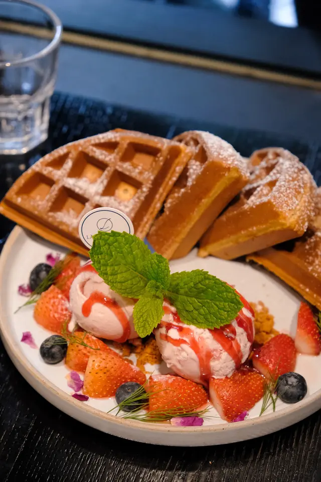 主頁餐廳香港上环LASCAR LANE自家製士多啤梨窩夫配士多啤梨雪糕