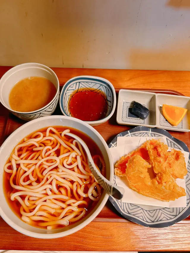 喺尖沙咀行完街想搵食,見呢間日式定食小店「捌加廿陸」主打自選天婦羅定食,仲有好多餸選擇,一於就試試佢🤓今次我哋都揀咗自選天婦羅定食,價錢都係$30起,可能揀唔同嘅天婦羅,每份都會配前菜+龍蝦味噌湯。🍜 熱烏冬(鰹魚湯)自選天婦羅定食 烏冬滑溜彈牙,配咗鰹魚湯底,好好食。每款天婦羅炸得啱啱好,全部都係即炸即食,正❤️‍🔥 今次試咗4款餸,松葉蟹鉗鮮甜,廣島蠔大隻多汁,牛肉餅肉香濃郁,全部都係即炸即食,熱辣辣最正🔥🥢 熱蕎麥麵(鰹魚湯)定食 另外一份揀咗熱蕎麥麵配鮮帶子、半熟蛋、皇帝蟹棒同南瓜。天婦羅帶子都幾大隻,炸到外脆內嫩,最驚喜係個半熟蛋天婦羅仲keep到好流心,係橙色嘅流心蛋黃🧡皇帝蟹棒好鮮味,好彩兩個都有叫,唔使爭😂!btw個人覺得食天婦羅一定要嗌南瓜😋🍍🍦 甜品 炸菠蘿伴海鹽雪糕 佢嘅炸物玩到連菠蘿都可以炸!冰菠蘿就聽得多,但炸菠蘿到底好唔好食?原來真係可以做到外層薄脆,裏面都keep到多汁香甜,配上海鹽雪糕,鹹甜交錯,一凍一熱,清新又解膩😝🪑 小店環境呢度裝修好有日本魚市場嘅感覺,好啱鍾意打卡嘅人士,趁機扮吓去咗日本食嘢😂📍 捌加廿陸天婦羅居酒屋 (尖沙咀)尖沙咀緬甸臺8號凱譽地下17號舖…查看更多