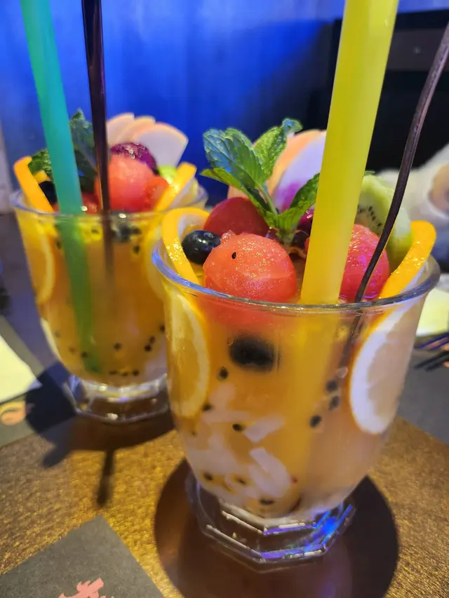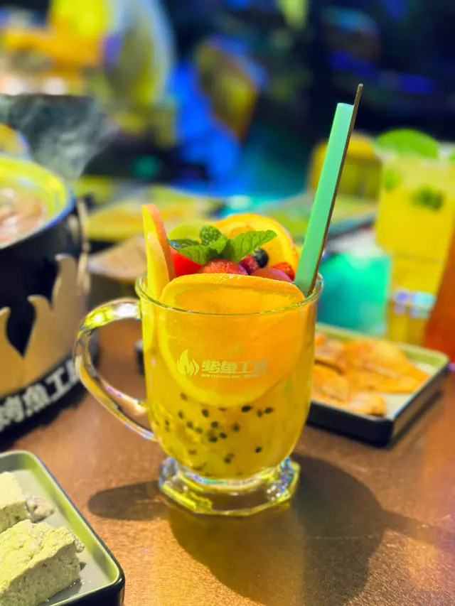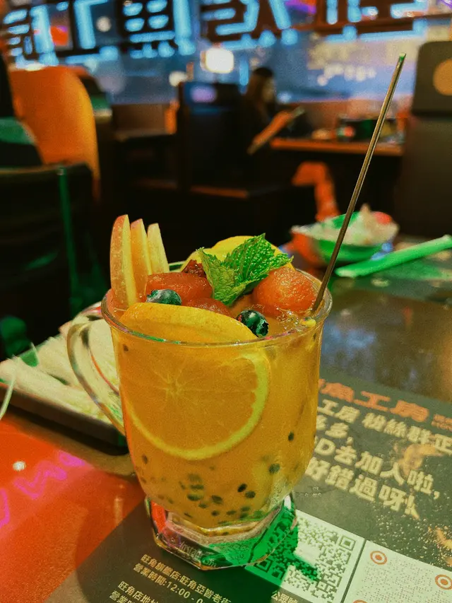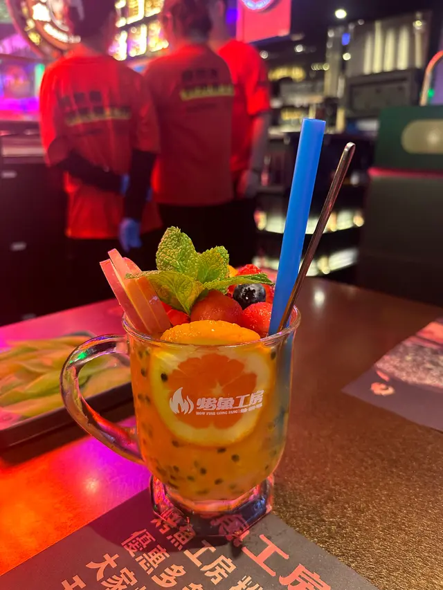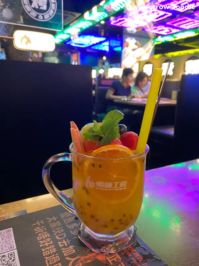 間唔中都會食烤魚過過口癮🤤今次朋友生日就想試試呢間第一次食感覺都唔錯😚裝修搭配一系列彩色的霓虹燈💈連天花板都有💈💈設計非常型格 氛圍又唔錯😎餐廳主打烤魚及燒烤🔥鹹蛋蒜香酸菜清江魚🐟烤魚有2款,今次揀左清江魚(小辣小麻),有大量的酸菜及炸蒜🧄完全舖滿成條魚🐟,蒜香味超濃厚令成個味道昇華🤩,隔左第二日個口仲有一陣蒜味齒頰留香😂,鐘意食蒜的朋友必食💯,但鹹蛋唔見蹤影要刻意去搵先食到少少比較失望,魚肉肉質厚實且啖啖肉,有啲魚骨要小心食,另加配火鍋粉(寬粉),金針菇及萵荀片,萵荀片食落好爽脆,寬粉係每次食烤魚都會必點,食落煙韌又吸盡湯精華烤土豆片🥔土豆片🥔切開一片片,每串有3片土豆灑上孜然粉調味,食落好軟腍及香口,忍唔住一口接一口,好好食手打渣男鴨屎香檸檬茶🍹個名好搞笑🤣,好掙扎飲水果茶定鴨屎香檸檬茶,最後揀鴨屎香檸檬茶,之前係深圳有飲過好鐘意,未試過係香港飲,好奇味道會唔會一樣,勁大杯檸檬茶🍋加入鴨屎香獨有香味,飲落味道更加清新,冇令我失望😌至尊水果茶🍹呢杯水果茶勁足料💯,裝滿超多水果包括有橙🍊,西瓜🍉,藍莓🫐,蘋果🍎及百香果,連平時比較少見的士多啤梨🍓,奇異果,火龍果及椰果都有,就咁食水果都好飽肚🫨…查看更多