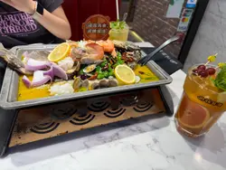 今日朋友帶我嚟到荃灣楊屋道呢間 麻辣年華 食烤魚🤩 入到去就已經聞到好香嘅麻辣味 勁有食慾😬 坐低睇睇餐牌 好快就落單啦😙 見到快樂二人餐做緊優惠價 即刻叫咗一個餐 唔使諗咁多🤣 黑椒牛柳串我哋揀咗微辣 烤得好香 肉又唔會柴👍🏻 至尊紅柳羊肉串羊臊味唔會超勁 半肥瘦 超好食😋 烤雞皮我哋揀咗小辣 烤得香脆唔油膩 脆卜卜一啖一塊😆 至尊水果茶必點!有800ml 啱晒食串燒或者烤魚 好大杯!入面仲有水果食 有西瓜、提子、同埋蘋果 配埋篤爛咗嘅西柚同埋檸檬 好清新呀😗 青檸金桔梳打清香爽口 酸酸甜甜好開胃! 金銀蒜烤生蠔手掌咁大隻嘅生蠔😍 厚肉多汁配埋蒜蓉醬 真係冇得輸😌 脆皮烤魚主角出場啦😍 揀咗青藤椒湯底 一上枱嘅時候見到咁多青藤椒都嚇親 不過我哋叫咗小辣 味道啱啱好😇 加咗少少海鮮 有鮑魚、鮮蝦、魷魚、同埋蜆😋 全部都好新鮮 鮑魚彈牙 海鮮吸晒湯底真係好正😝魚係用咗江團魚 冇細骨 肉質鮮嫩爽口啖啖肉 配埋湯底 好夾! 紅糖糍粑食麻辣嘢 點少得呢個糍粑😋 糍粑軟糯有咬口 配埋紅糖食一流👍🏻 整體嚟講 呢間麻辣年華 食物質素不錯 環境舒適 服務態度很好 老闆娘見我哋個烤魚滾得太勁 幫我哋裝起啲湯 等佢唔會滾瀉再倒返落黎 好細心👍🏻 見到佢有個烤羊架勁吸引🤩 一定會再嚟😋…查看更多
