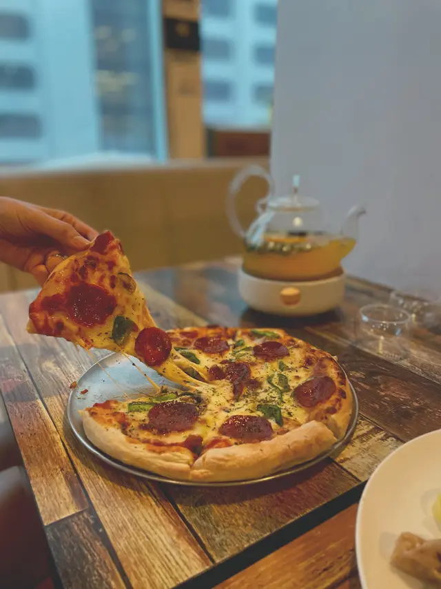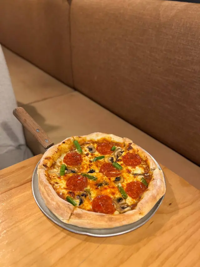 一間油麻地嘅樓上cafe,環境細細,燈光氛圍特別,稱得上係家庭風cafe。我同朋友叫咗個2人餐,上枱嘅有美式炸蟹餅,呢個蟹柳餅一口一個,食落方便,店家炸得佢外皮香脆,內層鬆軟,有少少彈牙唔乾口,點埋佢個泰式甜辣醬,味道嘅層次又再提升一級。另外有個10吋至尊辣肉腸pizza,個餅底唔會太厚亦唔會太乾,算得上比較鬆軟,可能同佢用嘅意大利麵粉有關;加上芝士味濃,蕃茄醬新鮮,辣肉腸份量足,絕對食得過。另外今日叫咗兩杯飲料來試試,分別是朱古力沙漠和綠茶紅豆。朱古力沙漠的朱古力味非常濃郁,而且還加了朱古力碎,視覺效果和口感都超特別的!綠茶紅豆的綠茶味不會太苦,甜度出眾,非常適合喜歡喝甜飲的朋友。最後個意大利飯粒粒分明,松露味唔會太濃,適合清淡口味嘅朋友。…查看更多