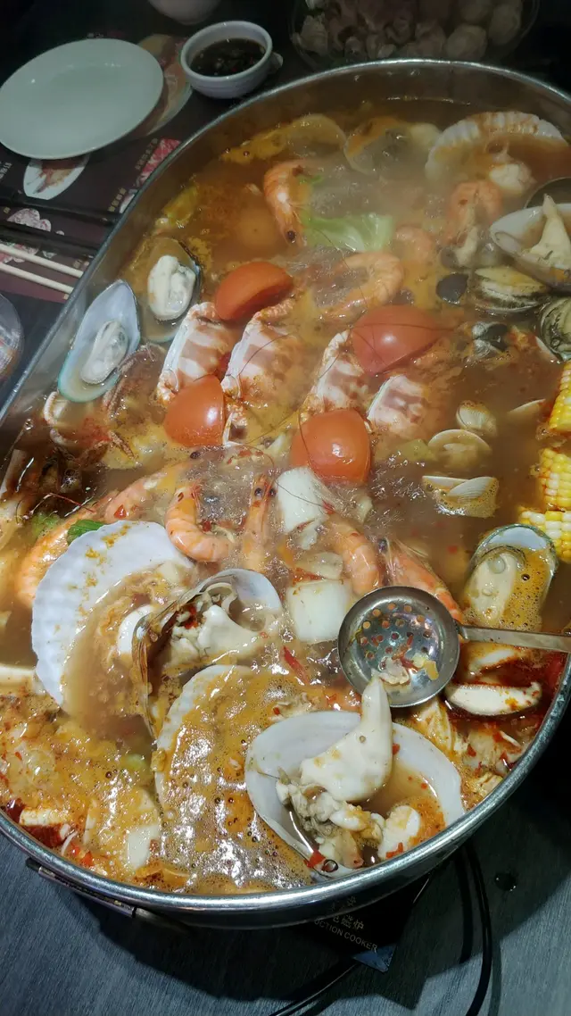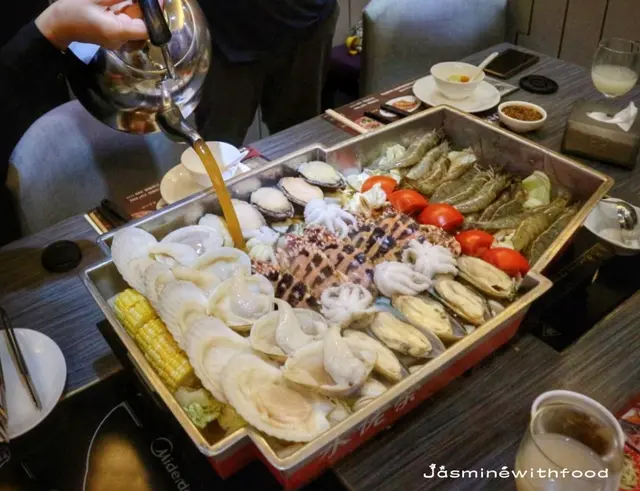 這盤航母海鮮盛宴,未食已經嘩嘩聲了,逐位朋友影相留念都影了10分鐘,賣相確實掂呀!盤夠大海鮮夠多😋 內有鮑魚、帶子、桂花螃、海蝦、青口及蟹等等,新鮮美味,吃完海鮮可再加火鍋配料繼續打邊爐,湯底凝聚了海鮮的精華變得加配鮮甜,絕對停不了口。海鮮餐價錢大約每位$270再加一,當晚再點了少許火鍋料及飲品,埋單也差不多$350一位,是非常ok的價錢。店務員也很街坊式,與客人溝通也比較地道,坐位也算舒服,人數夠多會安排獨立房間,有電視提供,朋友聚餐一流之選👍🏻…查看更多