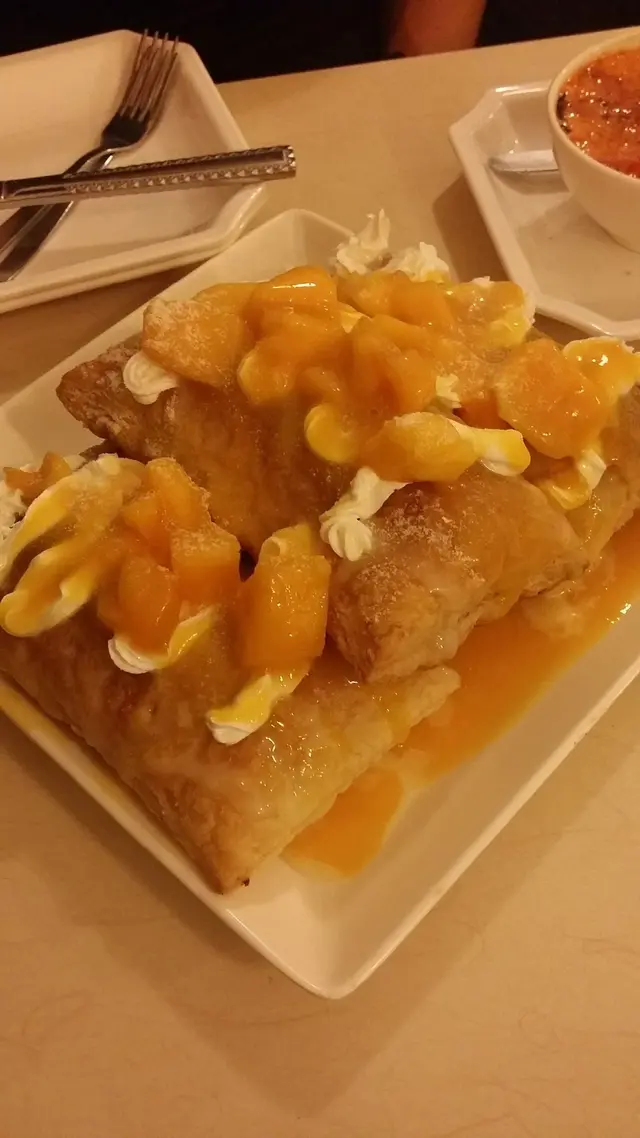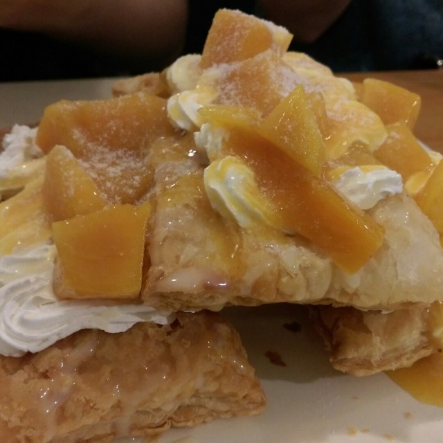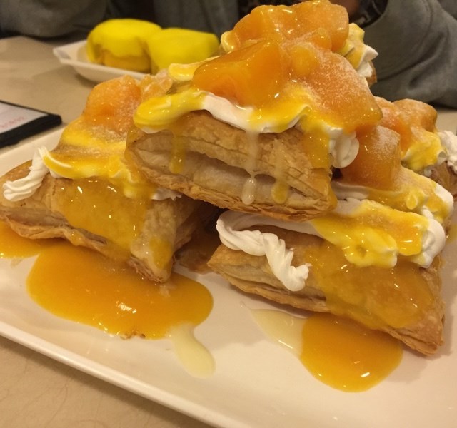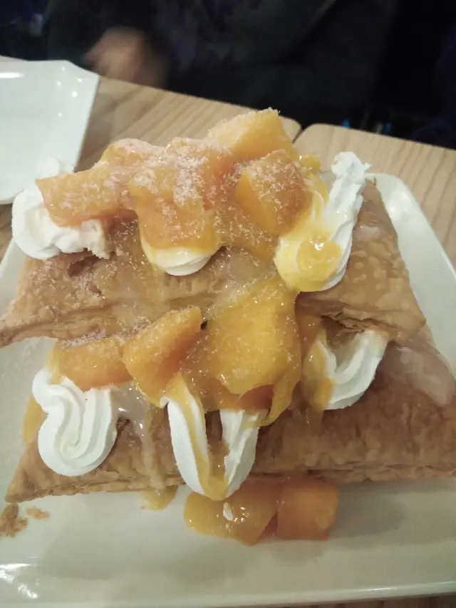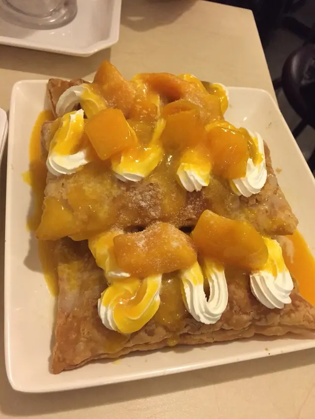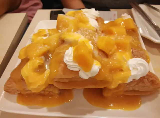 同fd係九龍城食完飯想繼續傾多陣計於是就即興走左入呢間糖水舖食糖水一行入去已經問到好香牛油味!跟住見到好多台都有叫呢款甜品見佢睇落咁正,聞落又咁香我地即刻決定要跟機叫個芒果拿破崙黎食價錢印象中都好似好平由於期望真係好大嘅緣故,食第一啖個下我已經小小失望🙍🏻♀️🙍🏻♀️🙍🏻♀️因為完全好似食緊空氣!!成個甜品係用芒果,cream同埋焗到脹起但係份量其實好少嘅麵面皮整每一啖都係得d脆又唔係脆,韌又唔係韌嘅麵粉殼有d唔知自己食左d咩嘅感覺雖然係好酥脆,但係真係得番酥脆冇其他口感好可惜,如果有d餡,或者個拿破崙本身多d嘢就好了