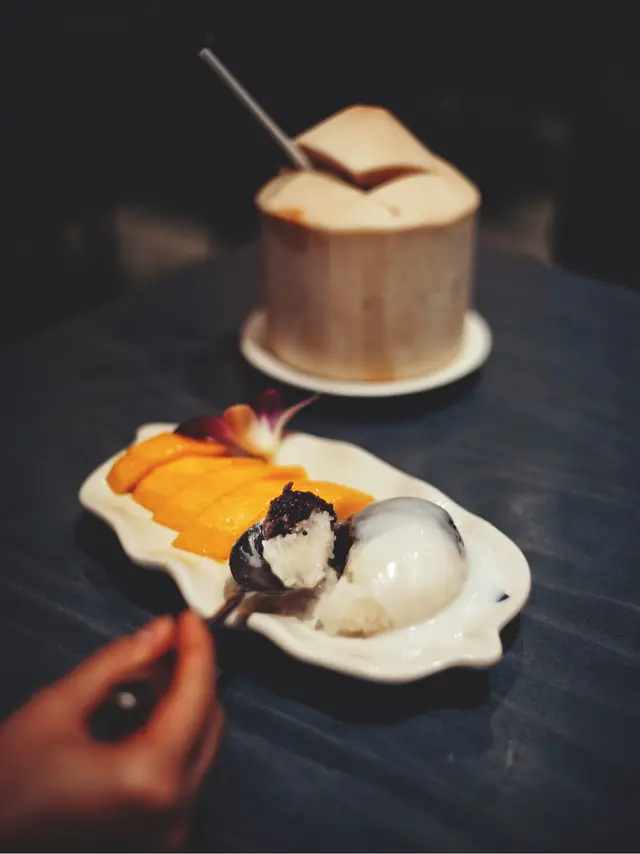 1 冬陰功海鮮湯河粉湯底唔算太辣,味道都幾好。雖然食得出材料都係急凍嘅為主要~但係份量足夠、種類較多,食到最尾都仲有海鮮d配菜,晚市$72算好食之列👍🏻 2 泰象啤酒🍻樽裝麥味幾足夠👍🏻 配埋下面嘅串燒,好夾!口感順滑,最緊要夠凍。3 沙嗲串燒豬肉配牛肉餐廳都幾為顧客着想,可以俾你雙拼三款肉(豬牛雞)嘅其中兩種。味道方面,雖然都係主要由醬汁帶動,但係肉質方面,一啲都唔輸蝕,入口夠林,同埋又有肉味;最緊要係唔痴牙,之前食過一間牛肉串燒,價錢差唔多,但就好un 4 芒果糯米飯芒果新鮮又甜,唔酸嫁。重點係佢有紫糯米再拼埋白色糯米。上菜嘅時候仲係熱辣辣,有蒸氣!環境:雖然坐戶外,但係最正在於佢個冷氣風扇,即使夏天一啲都唔會覺得焗/流汗!…查看更多