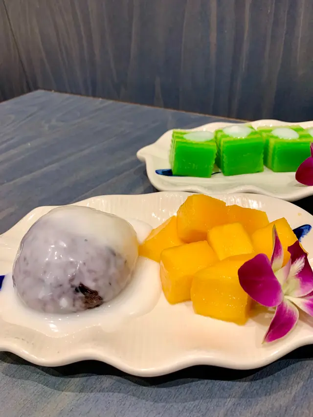 奧海城三期地下有幾間餐廳,都有室內外座位,好有度假feel好chill😙今次同屋企人過黎食泰菜,天時暑熱最岩食啲酸酸甜甜既野😁泰式拼盤 ($138)拼盤好豐富,有炸蝦餅、炸魚餅、春卷、串燒雞,每款各兩件,配上沙嗲醬同甜酸醬。炸物味道都正常,沙嗲醬好濃郁好惹味。碎肉生菜包 ($88)生菜都幾新鮮,碎肉份量夠四人分,每塊生菜都可以包到滿滿的。碎肉剛剛炒起熱焫焫,濕度剛好,都有啲肉汁,味道有少少辣。泰式煎蠔餅 ($98)同潮洲蠔餅唔同,泰式做法似蠔仔煎蛋咁,蠔仔份量都幾多,幾乎每啖都食到,冇腥冇沙,雖然粉漿有少少厚但食落ok的,食左一件都感覺飽飽了。鮮菠蘿海鮮炒飯 ($98)原半個菠蘿呈上既海鮮炒飯,好巨份!炒飯炒得夠乾身,粒粒分明,海鮮有蝦、魷魚、青口,配料有肉鬆、腰果、菠蘿粒,好豐富。椰汁三色冰 ($30)必點之飲品!椰汁味香濃,仲有啲果粒chew下,夏日涼飲解暑😁椰汁千層糕 4pcs ($30)食落軟糯,煙煙韌韌有嚼勁,仲有濃郁既椰汁味,大推!芒果糯米飯 ($50)呢個真係出色!有黑白糯米飯,椰汁比較稠身所以味道好濃郁,加上糯米飯煮得夠軟熟,仲係暖暖的,配上甜甜既芒果粒,簡直冇得頂!室內環境都坐得舒服既,四人枱都夠大張。姐姐店員都好有禮貌,每次端菜都會講係咩黎既,又會主動斟水,成餐飯都食得好滿足🥰.味道 ★ ★ ★ ★ ☆環境 ★ ★ ★ ★ ☆服務 ★ ★ ★ ★ ☆性價比★ ★ ★ ★ ☆.…查看更多