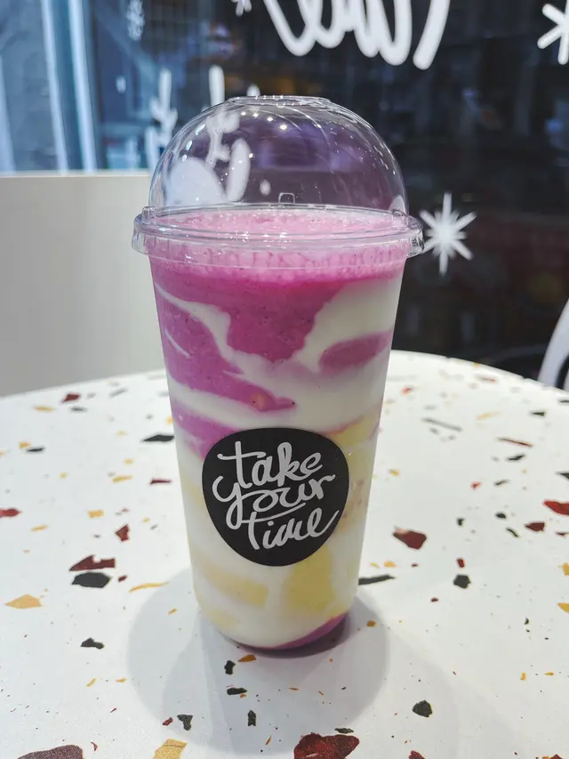 這間飲品店位於中環,鄰近地標PMQ元創方及中環街市,主打乳酪及鮮果飲品,所有飲品均以新鮮水果即叫即製作,堅持健康飲食理念,自家製桂花冰糖不含化學添味劑,健康又放心。店外天藍色的牆身畫上彩虹壁畫,店內則以純白色為主,擺放各式各樣盆栽植物,令人感覺像遠離塵囂般,悠閒寫意富文藝氣息。芒果紅火龍優格果昔 - $40黃紅白三種顏色相間,賣相極具吸引~以較健康的乳酪取代雪糕,幼滑細膩的果昔有著酸甜的乳酪及綿密的冰沙,香甜的芒果很清新,清甜的紅火龍更有少少爽脆口感。木瓜優格果昔 - $40黃白色相間的則是甜度高的鮮木瓜,有絲絲綿密的木瓜肉,含豐富營養被譽為超級食物之一。…查看更多
