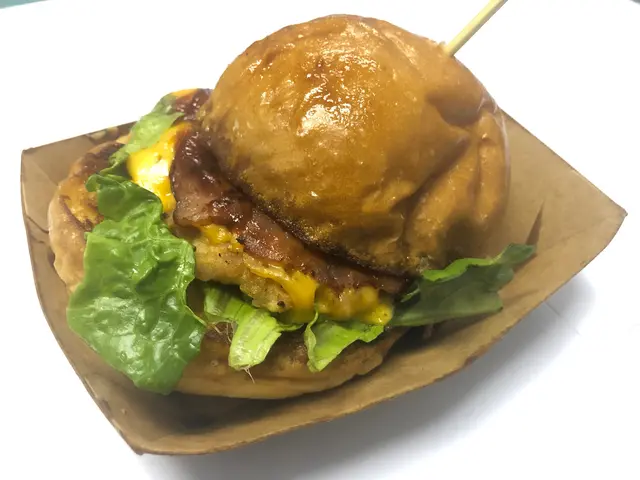 就叫了一個芝士煙肉漢堡來試試。看到外表蠻有驚喜。但由於外賣快遞用了頗長時間才送到,有點凍了...