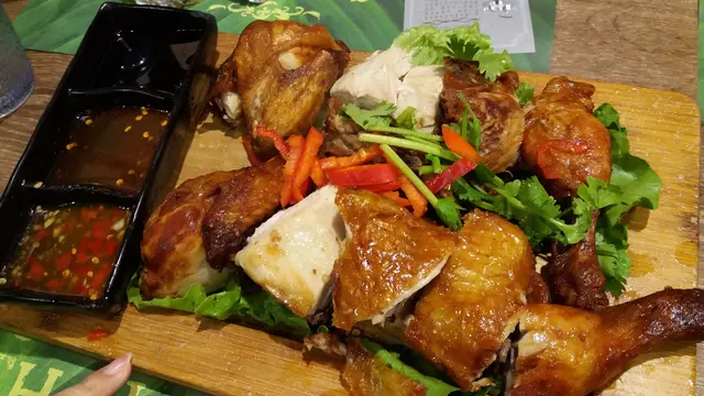 芭提雅燒雞,燒雞size中等,有肉,燒得好香,而且有三種唔同醬汁點