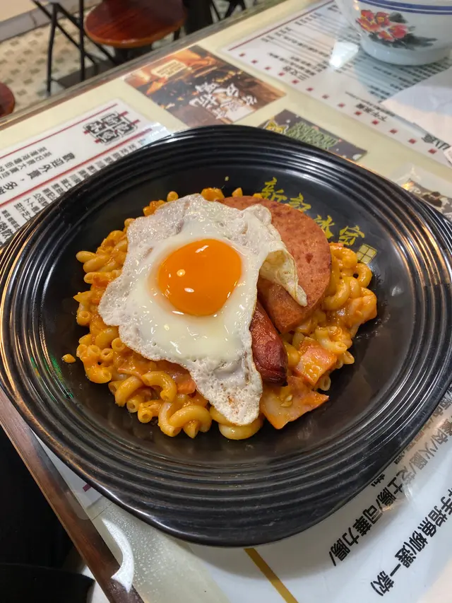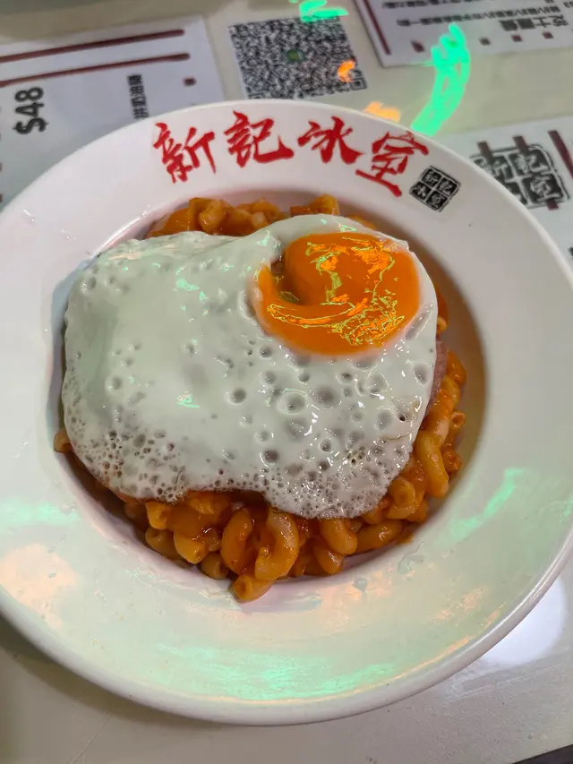 Brunch時段本想簡單吃個沙爹牛肉麵,但看到餐牌上的茄汁芝士公司炒通粉 $55感覺蠻特別,雖然非常邪惡,但就是點了這個!一隻很美的太陽蛋,蛋黃又大又呈橙色,下面有火腿跟香腸,通粉味道不會太濃味,不錯呢。友人選了自選扒飯-雞扒配司華力腸 $47見到螢光汁真係好經典,可惜司華力腸唔係一大條,而係幾片薄片腸而已。另一友人選了我想點的常餐 $48,有濃沙爹牛肉湯公仔麵配火腿雙蛋拼牛油多士,沙爹牛肉味道唔錯但不算特別,煎雙蛋的又大又橙的蛋黃亦是焦點。…查看更多