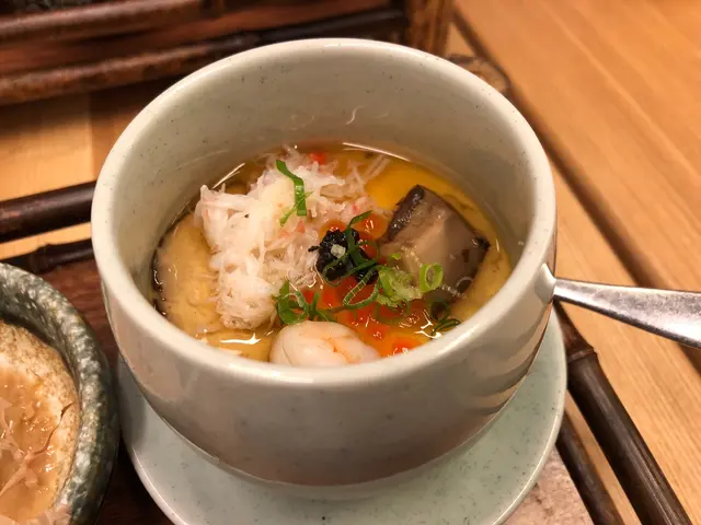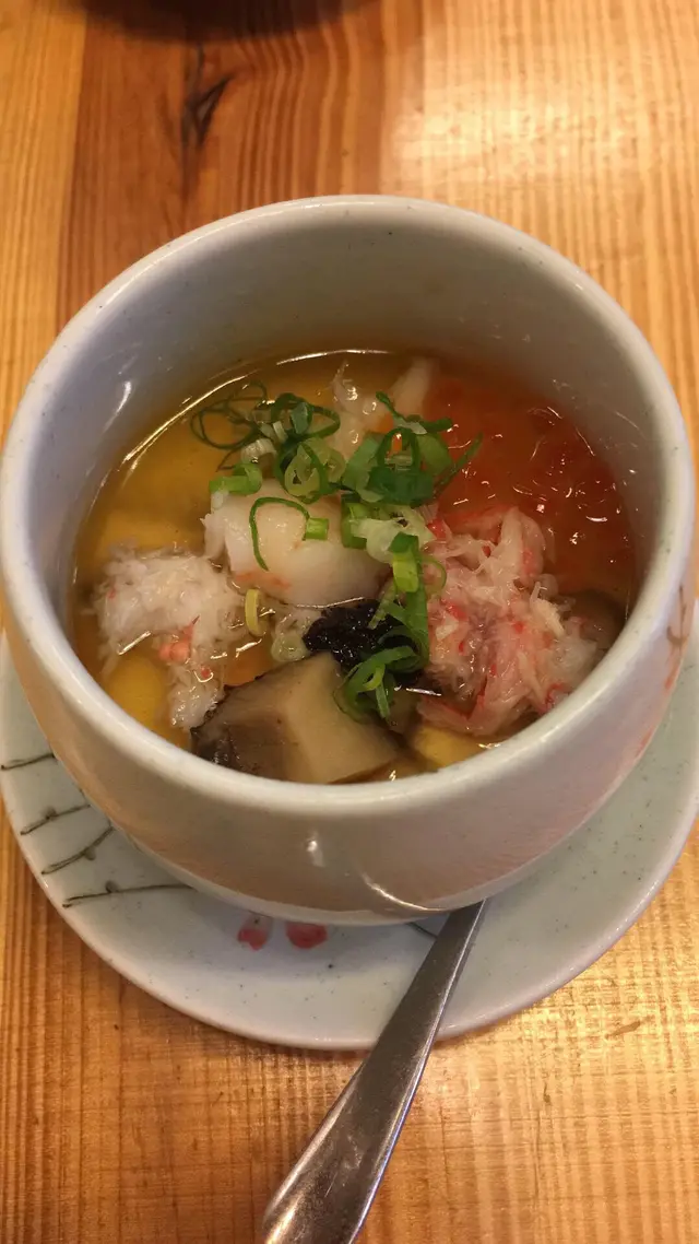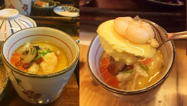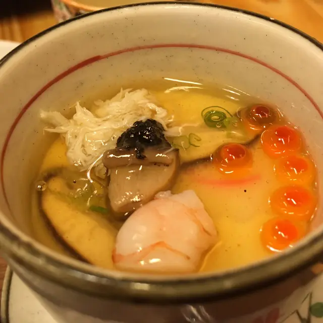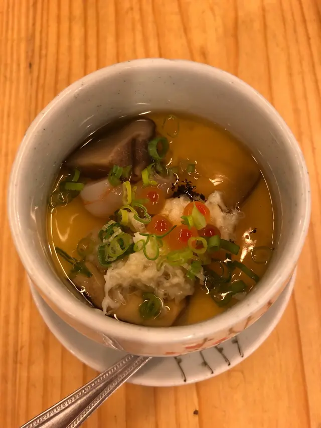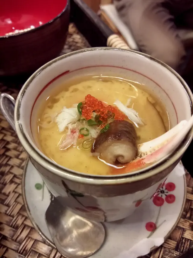 前菜有牛舌粒(幾重牛味,肉質柔軟),蕃薯,漬物,凍豆腐,吞拿魚粒(鹹左d), 仲有超好味豪華嘅茶碗蒸!茶碗蒸單叫$38, 入面超多料,有三文魚子,香菇,鳴門卷,蝦,蟹肉,松露...真心單叫都勁抵食!又滑又濃蛋香味,記住要趁熱食!