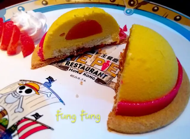 在餐廳門口已看到兩款蛋糕,就全都點了。草帽造型的是清新芒果味,餅底酥脆,挺身的芒果味mousse夠滑,中間還有芒果肉呢!Chopper 帽子造型的題紅莓mousse cake,質感也挺身,酸酸甜甜的,也有餡料在中間。原本以為這種主題餐廳只有gimmick,重點在環境不在食物,但想不到他們的食物都不錯,最喜歡Franky漢堡!是不是one piece fan都值得來