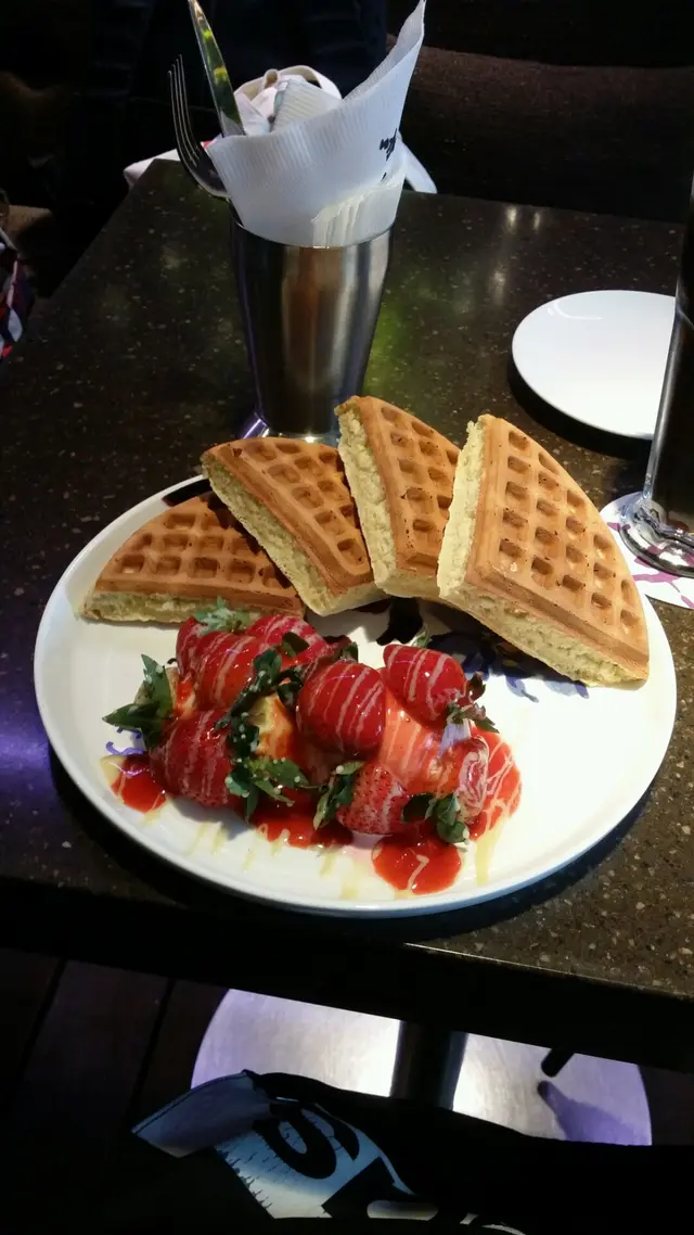跟朋友做完瑜伽,就去了銅鑼灣吃晚飯,由於另外兩位朋友剛剛吃完下午茶,所以我們就選了咖啡弄。不得不提是這是我第一次吃,因為每次想吃都要等,今次我終於不用等位了!海鹽焦糖拿鐵 - 香香的咖啡味,配上很邪惡的忌廉配上焦糖還有一些堅果,latte 滑滑的,但是渴不到海鹽味 黑糖卡布奇諾咖啡 - 朋友點了這杯 嫩煎香草雞肉巧巴達三文治 - 做完運動,要吃得輕盈一點,所以點了雞肉,這個即場做,要等30分鐘,雞肉很嫩滑而且麵包不會太硬,還有新鮮蔬菜總匯三文治 - 另外兩位吃了下午茶的朋友就點了這個 share, 容量很大的三文治配上薯片,由於他們不是太餓,所以沒有把它吃完,我就只是幫口吃了薯片 🤣 鳳尾蝦飯 - 這個就等得太久了,我們下單後等了超過45分鐘還未有,亦都已經追單兩次。朋友快餓死啦 草莓冰淇淋鬆餅 - 最後我們點了這個share,這個格仔餅是比較硬身,所以點了冰淇淋後不會淋,草莓很新鮮又大粒 👍🏻 它的甜品真是好吃 由於見門口有很多人等位,我們吃飽坐了一會就走了,整體是好吃的!…查看更多