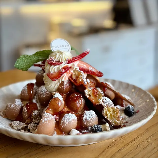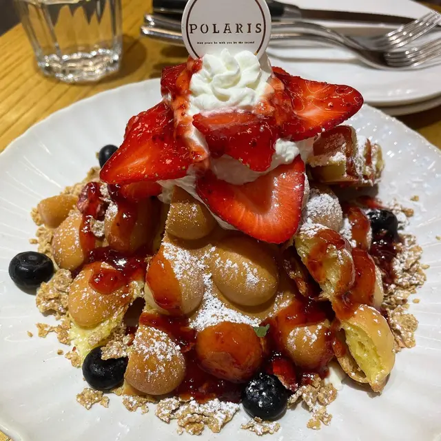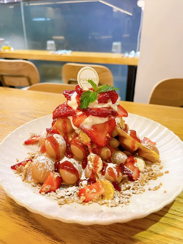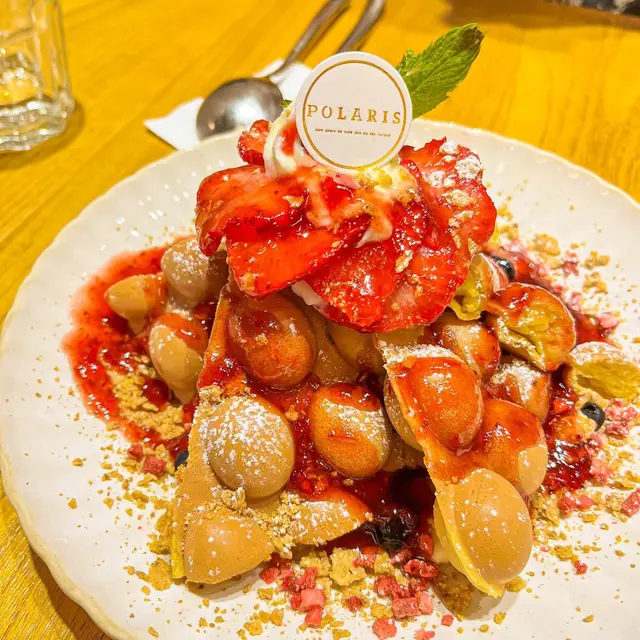 上個月同朋友約咗係大埔小店Polaris食晚餐,發現原來新界東有間咁高質嘅小店🥹前幾日趁星期五放工又再次由港島遠征到大埔,為咗美食,來回兩小時係值得!黑松露牛肝菌蘑菇湯 $48————————————黑松露同牛肝菌嘅味道都非常香濃,啖啖蘑菇顆粒感,超足料。店員送上去皮嘅凍蕃茄仔比我哋Refresh吓口腔,酸酸甜甜嘅味道,每粒都非常多汁,非常開胃!炙燒開心果奶蓋綠妍 $48————————————個奶蓋勁出色,薄薄一層炙燒增添咗香口嘅感覺,開心果味好濃郁,同時又唔會太甜,奶蓋勁厚,超柔滑超綿密,配上清新嘅綠妍🍵個配搭好正。農場草莓乳酪明治牛奶 $48————————————好多士多啤梨肉🍓甜甜一杯好易入口,好有少女心💕蘋果木煙燻日本章魚•蒜蓉蛋黃醬 $88————————————墊底嘅墨汁薯蓉超有驚喜,除咗入口超香之外,口感既順滑又超綿密。再配上刁草同埋蒜蓉蛋黃醬,層次更加豐富,再加上小蕃茄解膩,章魚有少許Smokey感,口感彈牙🐙雖然主角係章魚,但其他配料都非常出色,整個配搭都非常有誠意。油甘魚刺身•秘製奶油汁•刁草油 $88————————————油甘魚刺身味道清爽,肉質較厚實🐟配上餐廳自家製嘅秘製Cream sauce同松子仁青醬,加上紅椒粉、刁草、刁草油,既精緻又能帶出刺身嘅鮮味。虎蝦北海道帶子龍蝦汁扁意粉 $138————————————份量好大🍝虎蝦同帶子都煎得好香,龍蝦汁非常濃郁,扁意粉好掛汁。48小時慢煮美國黑毛安格斯牛小排•烤雜菜•紅酒燒汁 $298————————————慢煮可以減少烹煮時嘅水份流失,保留食物嘅原汁原味,牛小排肉質軟腍,同時保持到肉質juicy。餐廳嘅紅酒燒汁用咗大量牛尾骨同蔬菜熬製兩日兩夜,非常用心,紅酒汁配牛肉真係好適合。莓之戀人 $98————————————好似座山咁大嘅甜品⛰️雞蛋仔係即叫即整新鮮出爐!配上Berries🫐仲有雪糕🍦自家製提拉米蘇 +$48————————————惠顧Main course, Pasta等等,就可以優惠價$48享用餐廳自家製Tiramisu,每一口都口感軟滑細膩,好Creamy!…查看更多