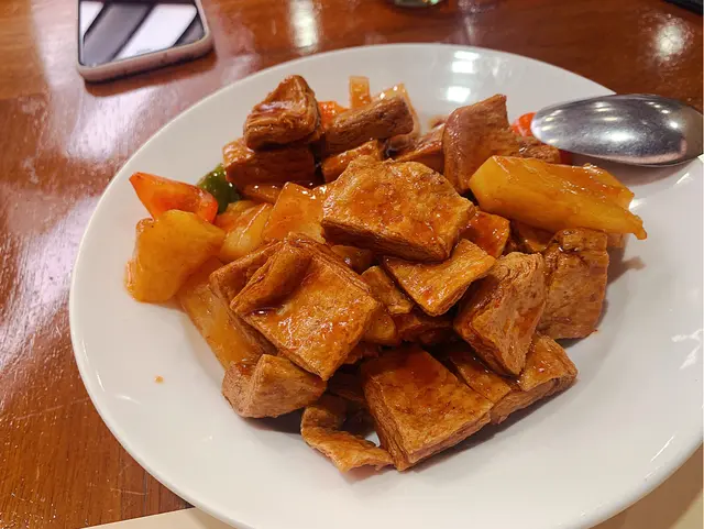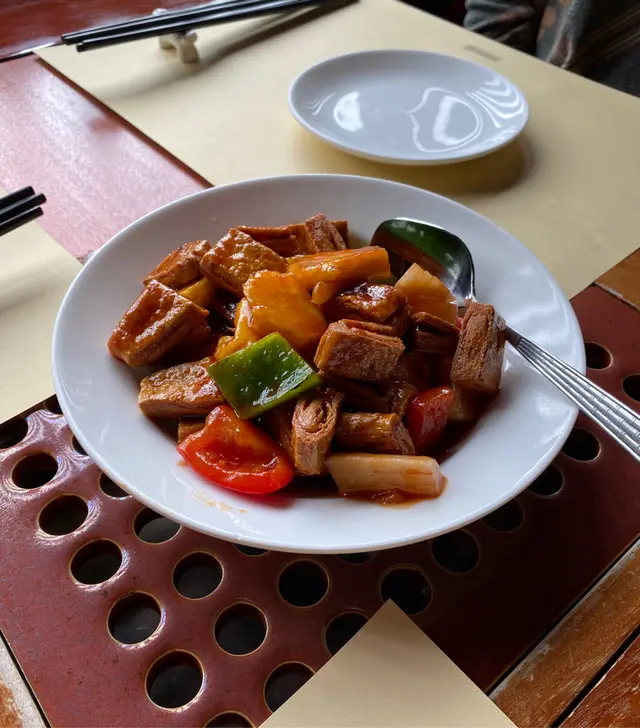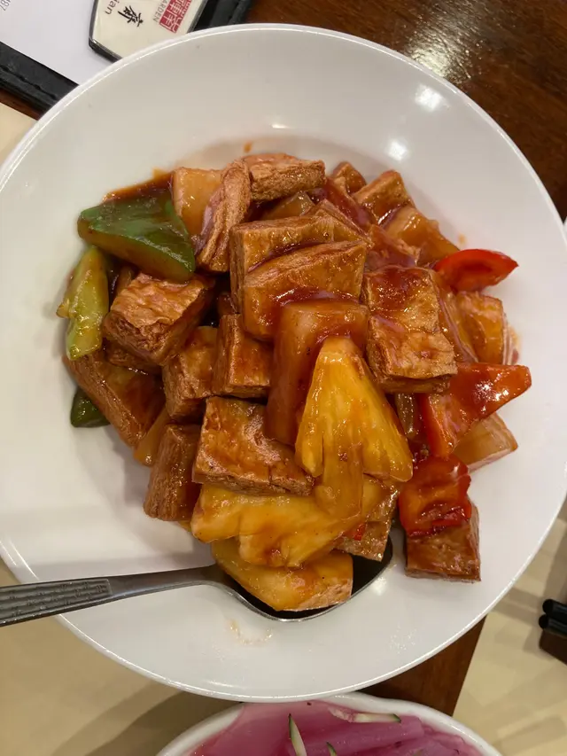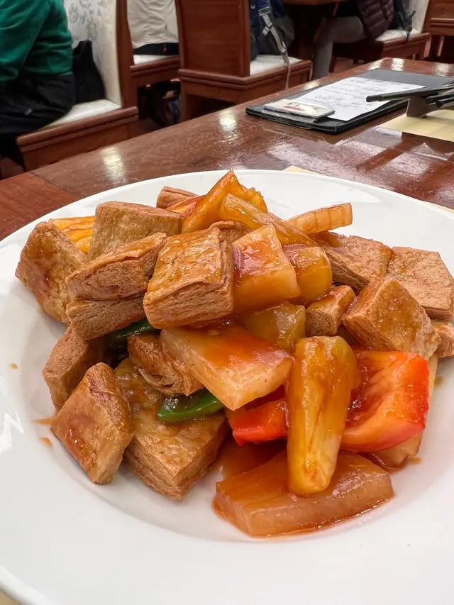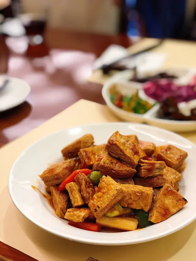 平日煩囂既生活,响假日時想慢活一下又清淨一下....咁岩下午要去牛池灣睇show,响市中心又遠離煩囂既好去處,我突然諗起志蓮淨苑。因未去過,今次可以輕食齋菜,又可以去行一下。。。。响openrice seach 見到有幾間餐廳,食齋菜既環境又不錯的話,我地挑選咗龍門樓。我地今次walkin 差d 無位😅餐廳有3層,建議假日去要預先訂枱。。。我地今次輕食,淺嘗咗4款菜色:~1. 五福拼盤 (小) 💰$168原本諗住叫(中) size,但經過店員建議我地揀咗(小), 份量已足夠2人份,五福包括:🥗紅菜頭沙律Mix 咗沙律醬既紅菜頭,酸酸甜甜,配以紅菜頭既質感,好開胃😋🍄🟫醬燒菌d 菇吸晒醬汁入晒味,配以紅燒既煮法,乾身又入味🪻紫甘藍醋粉皮平常涼伴粉皮都係用胡麻醬,餐廳用咗醋既做法,酸酸地好開胃💐風味碧肉賣相黃黃綠綠好靚,黃色既花仔,原來係小黃瓜花,好特別,清清地,感覺好健康🧆香麻海苔麵根涼菜必選既麵根,吸晒醬汁d 味。惹味但又唔會好咸2. 菠蘿咕嚕肉麥纖 💰$125平時食小菜我都必叫既咕嚕肉😍,今次就試下齋菜版。 好有驚喜,口感同真肉版差不多,無論味道同質感都同食普通既咕嚕肉極度相似。糖醋煮既麥纖,菠蘿🍍,酸蘿蔔,青紅椒🌶️🫑,好味又唔會令腸胃有負擔,極力推介🤩3. 地衣牛肝菌白玉炒飯 (小份) 💰$102呢度有好多款炒飯,因平時少聽地衣藻,所以今次就試一下。 味道同普通炒飯差不多,牛肝菌增添香味,白本菇同松子就增加美觀同口感,咁岩坐隔離枱既外國人都係叫咗同款炒飯🤭未試過既可以一試4. 腰果桃膠露 (碗)💰$72好濃好香,不過就偏甜,加咗桃膠感覺好養顏👱🏻♀️食飽可以園內散步行下,好好享受休閒既假日🌞…查看更多