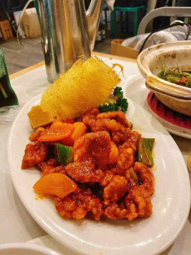 與友人看戲,出來後商場已經漆黑一片,回到了土瓜灣,街上人煙寥落,店舖已關門,唯獨對街角後巷仍然燈火通明。我們發現是很受歡迎的《楚撚記》,決定來一個宵夜。走到門前,牌上寫着10點後一律八八折,唯有為了錢包的重量餓一下。門內大多數都是三五成群的朋友,桌上放滿小菜及冰鮮啤酒。我和朋友首先點了兩個小菜,鮑汁海皇福建炒飯及菠蘿拔絲咕嚕肉(梅頭)。點福建炒飯是因為太餓了,濕炒飯跟一般茶餐廳一樣,在預期之內。🥢鮑汁海皇福建炒飯值得一提的是菠蘿拔絲咕嚕肉,外脆內嫩,浸在酸甜的醬汁中。醬汁有桃及菠蘿的果香味道,混以香甜的拔絲— 糖絲及一塊大冰糖,惹味非常。🥢菠蘿拔絲咕嚕肉難得來到,我們再點了一客酥炸黑松露菌醬芝心乒乓波牛丸,嘴裏爽口彈牙,流出的連綿芝士醬, 非常香口。🥢黑松露菌醬芝心乒乓波牛丸臨走前,還有免費的番薯糖水贈送,雖然番薯不多,但口感軟糯,帶有薑的辣勁(好像不同於其他食評家的經歷),非常暖胃。🥢番薯糖水…查看更多