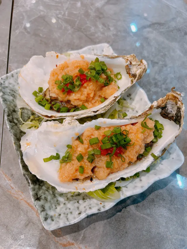燒蠔上放滿自家調配的新鮮蒜蓉,配剛好不會老的大大只燒蠔~正🤤