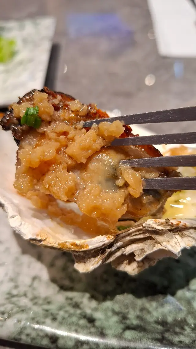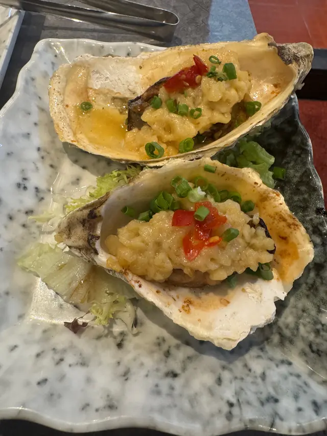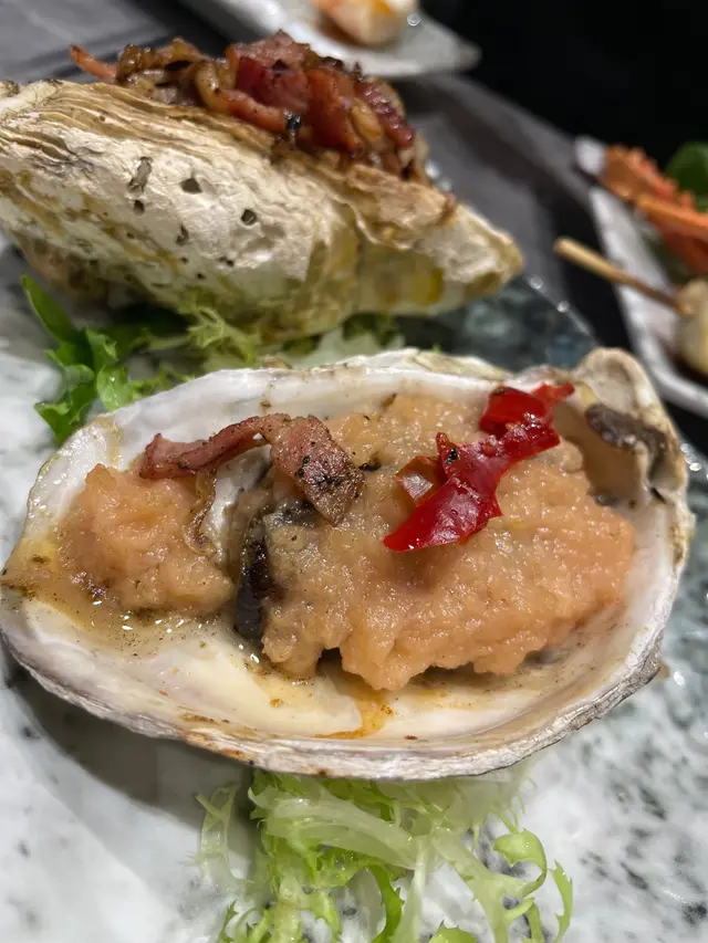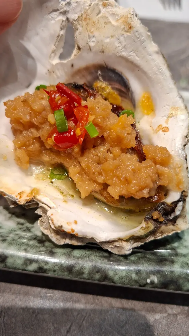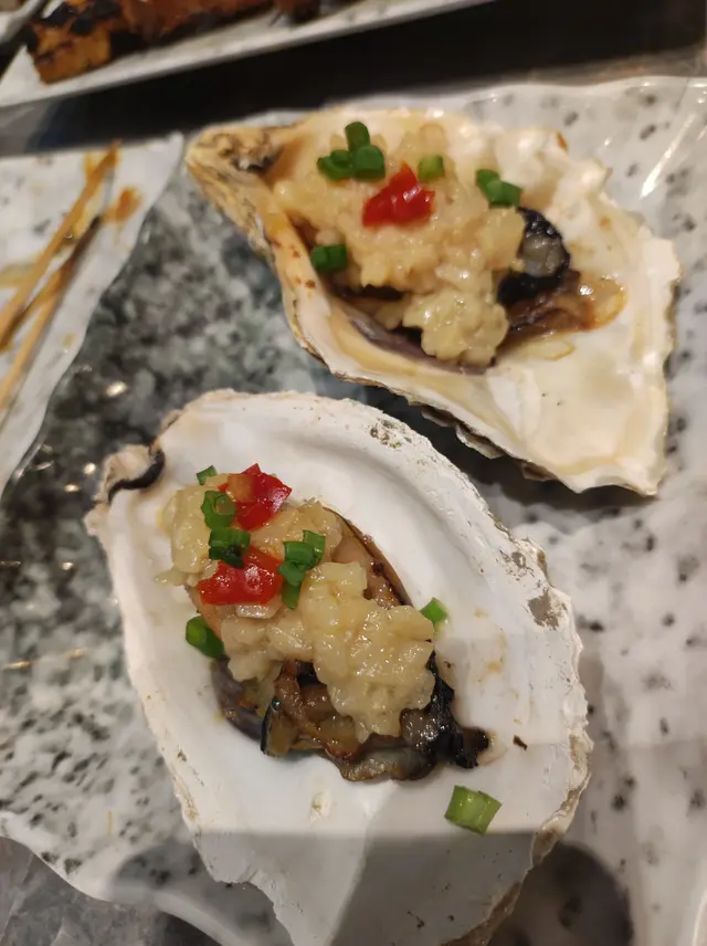 發現食肆臨立的又新街,附近有串燒店新開張,立即上OpenRice 搜尋食評,一面倒向好的👏🏻難得今個星期五(小週末)老公放假,可非繁忙時段去光顧,能靜靜地慢慢享受😋食店註明下午4:00營業,我們就準時到達😬但原來4:00只是員工們開始上班準備開舖而已,下次就晚些才來吧😅店舖不大,坐位不多,但都是乾淨企理的看了多遍食評,已鎖定了必食的和牛封門柳、蒜蓉燒蠔和大眼雞蒜蓉燒蠔先上桌😍賣相好吸引,燒蠔上放滿他們自家調配的新鮮蒜蓉,還有一點點紅椒絲和葱花,跟燒得剛好不會老的大大只燒蠔,簡直無敵😜跟住是和牛封門柳了,我們倆都嗜牛的,但老伴慣食5成,我就愛全熟,在互相遷就下,點了7成熟😜嘩!擺盆不錯👍🏻好吸引,拼上配牛扒不會輸的脆薯格😋薯格炸得剛好,不會過透,令口感油膩,而7成的封門柳也不會過熟,仍然做到肉面燒得香口微焦,內肉仍然帶少許粉嫩,令牛味保持濃郁,但又不會帶有我抗拒的肉羶味,well done 💯接著是我倆打冷時最愛吃的大眼雞,燒魚肉正常發揮,不差,但驚喜在於那塊起出來了的魚皮,魚皮是跟魚身燒到甩肉後,再分開燒烤至爽脆,有薯片口感😍嘩!又是無得輸😍第二輪攻勢是蜜汁魷魚🦑筒、原隻燒雞肶、雞全翼,還有雞腎串,鹽燒鯖魚⋯全部都昰我的至愛😋雞腎串難得可以叫大辣😬很久沒有嚐過有餘味帶辛而微甘的大辣了🤤全部都好好吃,好滿足😌每份燒物都份量充足,已經飽了8、9成,最後到蔬菜類,叫了必食的燒韭菜、燒原條茄子,都叫了大辣😬還有烤焗西蘭花🥦但走芝士🧀️改用蒜蒸醬茄子口感柔軟厚肉,吸收了他們調配的蒜蓉醬已經好美味😋大大條韭菜原條串上竹纖,燒香後仍然保持嫩綿口感,簡單調味,再灑上少許大辣粉,不會掩蓋了韭菜獨有的辛香氣味西蘭花🥦燒出來,能保持碧綠色,仍然脆嫩爽口証明他們燒烤蔬菜類的火喉都拿捏得好好👍🏻大滿足的一餐…查看更多