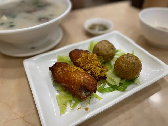 首页餐厅香港佐敦盛記粥麵蒜香南乳炸雞翼拼炸鯪魚球