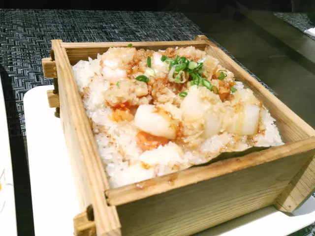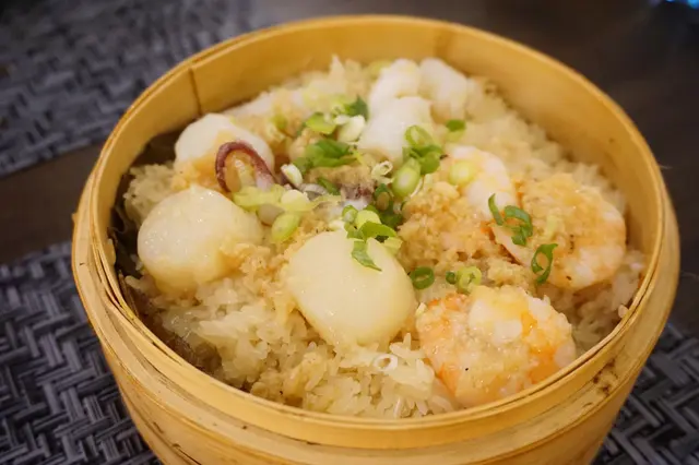左蒜香海鲜籠仔糯米飯$68賣相很棒,色香味一流!糯米飯堆滿香蒜,糯米飯粒都幾煙un,再加厚身帶子、蝦肉、珊瑚蚌同蟹棒,相當惹味!之後我地又叫另一款