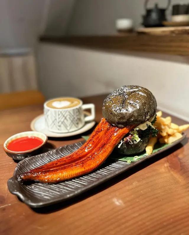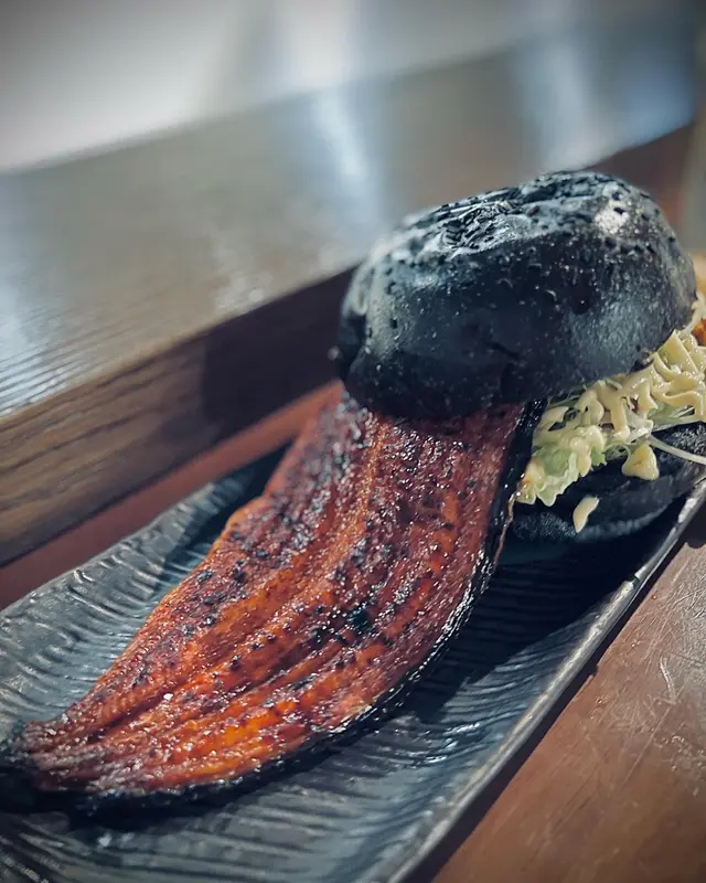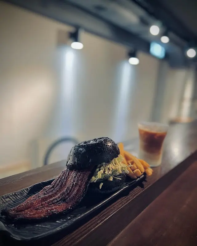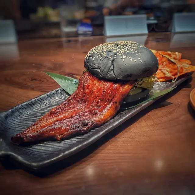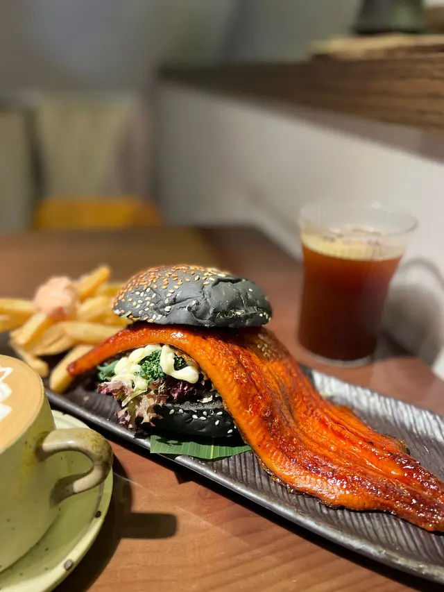 Nomad以灰色和木系為主調,營造出一個簡約和型格的空間。餐廳座位寬敞,有兩層高。門口有一條長樓梯,打卡一流。餐廳最主打蒲燒鰻魚漢堡和吉列豬扒三文治。可惜今日豬扒售罄,唯有下次再試!蒲燒鰻魚竹炭漢堡鰻魚漢堡賣相十分吸引,鰻魚原隻上,非常巨大!鰻魚肉質肥美軟嫩,燒烤後表面帶有焦香。配搭鰻魚汁,香濃惹味。漢堡包兩面都有烘過,香脆鬆化。薯條上枱熱辣辣,非常香脆。檸檬冷湯蕎麥麵天婦羅海老天婦羅海老上枱熱辣辣,炸粉薄而脆。而蕎麥麵吃起來有彈性,配搭清新微酸的檸檬冷湯,很適合解去天婦羅的油膩。…查看更多