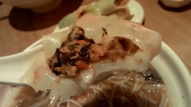 由於時間尚早, 人唔多, 入到去阿姐任你坐, 等你坐定先比水比餐牌你, 雖然招呼唔太熱情, 但你有需要佢會出現, 唔錯~得2個人, 但樣樣都想食, 好彩佢D小食有D係半份, 可以等你試多幾款, 當然價錢會貴少少~  特別牛金邊粉餐牌上寫話係用傳統秘方同新鮮牛骨熬製而成, 果真好濃味, 對於我地食開清淡的人嚟講, 係濃到涸喉~ 個粉有幾特別? 簡單嚟講係4餸粉, 唔係幾特別啫~ 個粉咪又係咁上下, 不太特別~ 胡椒牛札肉 -> 肉質比較實, 個人喜歡食開的豬肉札肉 金肚絲 -> 將d金錢肚切到好幼絲, 唔會un 牛腩片 -> 切到好薄, 吸哂湯味 生牛肉 -> 唔肥, 我鍾意, 但當然要第一時間將佢收响粉底, 等佢變熟, 但熟咗又唔會un, 因為佢超薄lor 豬扒雞絲湯河豬扒切到鬼死咁幼, 咁樣看似好多, 但其實半塊豬扒都冇~ 個雞絲就老咗un咗d, 個湯一樣都係咁濃~ 由於我地走青, 個賣相係差少少, 只淨餘洋蔥响面, 唔夠色水~ 春卷都幾貴下, 十幾蚊1條, 又唔算大條, 都係紅蘿蔔絲、木耳絲、沙葛絲、粉絲等等果d料, 1條切開兩舊, 如果唔係包埋生菜, 係一口可以食得落的~ 蒸粉包呢個夠哂飽肚, 粉皮又夠厚, d餡同春卷差不多, 只係呢個蒸, 加咗d乾蔥响面, 係香口好多~ 胡椒肉卷似係春卷同粉包的混合體, 不過就勁胡椒味~佢呢度d嘢都唔平丫, 又係連鎖經營, 都唔知點解冇得碌咭, 要比cash~…查看更多
