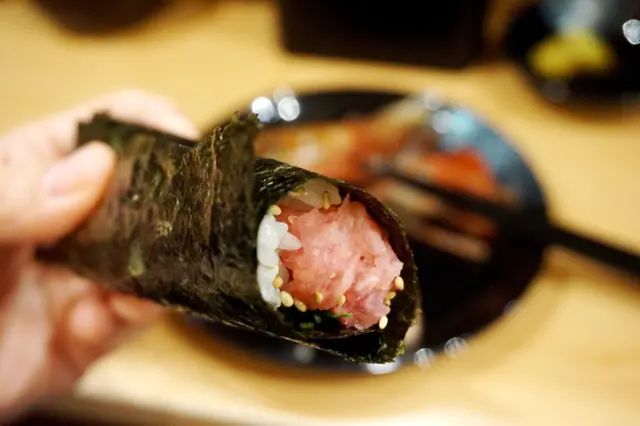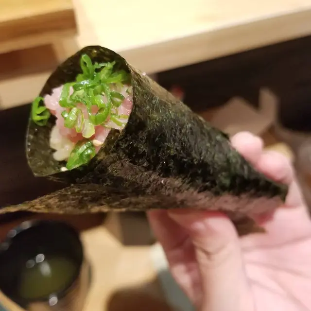 今次去翔壽司食晚餐,由原本嘅立食變成有座位坐,咁就可以同朋友慢慢嘆傾吓計。鮪壽司拼盤包括有:赤身、中拖羅、大拖羅、腦天、炙燒面脥肉、蔥吞拿魚腩手卷。中拖羅魚味濃郁‼️大拖羅油脂非常豐富‼️腦天魚味非常香濃,有回甘味‼️面頰肉充滿彈性,食落有啲似生牛肉刺身‼️手卷嘅吞拿魚腩蓉份量非常足,食到尾都仲有😍炙燒壽司盛盒包括有:炙燒吞拿魚腩、炙燒三文魚腩、炙燒吞左口魚邊、炙燒金線鯛、炙燒帶子。經過炙燒後,魚味更香。比較特別嘅係金線鯛,即係日本紅杉魚,魚皮上嘅紅黃花紋好突出,魚肉柔軟黏口,魚味偏淡但鮮甜☺️10件自選壽司只係$168,價錢唔算貴。點左比較特別嘅魴鮄同深海池魚。兩款都係深海魚,肉質鮮甜美味😋拖羅海膽杯喺飯上面鋪滿滿嘅一層碎拖羅,上面再鋪上肉質肥厚又大大片嘅加拿大海膽同入口卜卜脆嘅三文魚籽,真係超級滿足😌…查看更多