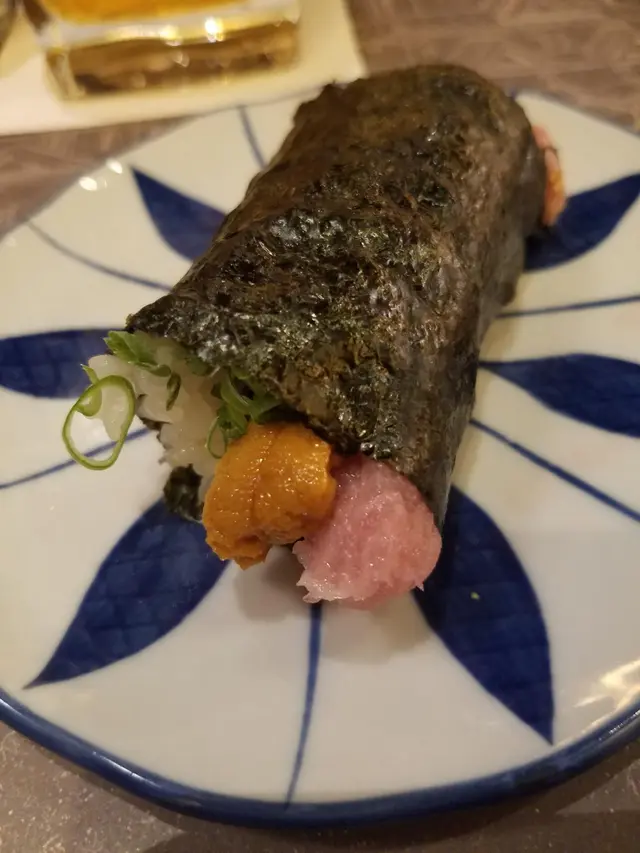 今日我和朋友去到於尖沙咀的真鮨,一嘗他們的手勢。他們的店面非常之明亮光鮮,入到去我們揀選了是日店員推介嘅精選菜式,不一會兒食物就送上了!前菜料理/日本枝豆估不到只是和風番茄沙律同埋日本枝豆已甚有特色,很惹味同埋開胃,很不錯的!日本原條刺身魚 - 葉血引到了是日的重點葉血引!師傅有心地逐件切逐件去上桌,並體現出日本人辦事的細心和認真的精神!值得一提嘅係刺身非常之新鮮味美,味道有香濃嘅魚味,入口即溶,岩晒啲鍾意食魚嘅人。A4和牛壽司A4和牛外脆內軟,用了三種唔同嘅煮法,感覺非常之好,再加上佢嘅特製醬料,絕配,也是很不錯的選擇!燒雞皮/串燒鴨腎/燒日本青椒仔燒雞皮笑得剛剛好又香口又唔油膩,極力推介!串燒鴨腎一樣是上桌,雖然是鴨腎,口感真係非常之不錯,絕對ok的。燒日本青椒仔可以一試。蔥花海膽大阪卷到了是日的另一重點蔥花海膽大阪卷了!由於師傅很有心地精選及準備各種新鮮直送海產,故件件新鮮味美。特別值得一提佢哋用咗新鮮嘅海膽成兩層高,入口味道即溶又濃厚。期間店員還不斷替我們加茶,非常之周到貼心,難怪咁好生意!…查看更多