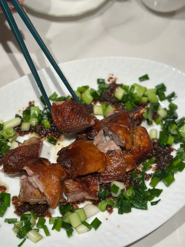 蔥香脆皮烤鴨 唔係廣東燒鵝嘅味道。而係比較多五香粉嘅香味。個肉幾嫩,皮唔算特別脆,但係整體好香口。伴住碟有一個似XO醬加橄欖醬嘅醬料,同埋大量有鹽味嘅香蔥。無論撈埋烤鴨一齊食,或者就咁攞撈白飯都非常之惹味。份量唔算大,但整體係幾惹味香口好味。湯👌🏼陳皮菜蒲頭老鴨湯 淡淡地老火湯嘅味道,唔算鹹但係夠味,感覺冇味精。❌