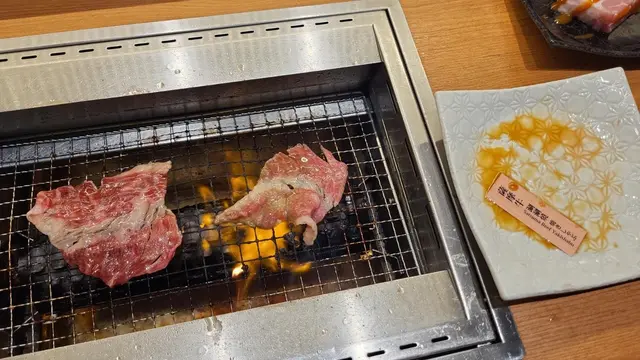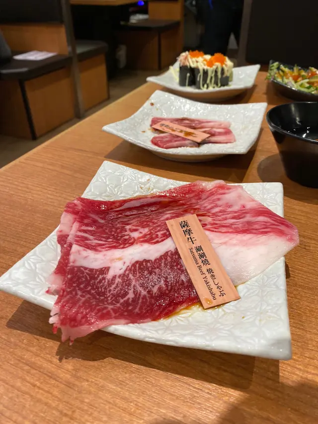日式餐廳設計非常好, 整齊清潔, 無油煙味.座位獨立, 空間闊落, 坐得舒服, 可以慢慢燒, 係至高享受.侍應招呼非常有禮, 彩頁餐牌清晰, 點餐無難度. 多款牛肉盛盒組合, 可以食齊牛的各部位. 我們點了自慢燒肉 10 種盛盒.套餐有自助果汁, 汽水, 咖啡/茶, 任飲.最先由輸送帶送到我們檯號, 係一盤子 自製調味料, 有說明指示調製方法, 侍應姐姐好細心在旁提點, 先手動磨芝麻, 再磨蘋果, 把芝麻, 蘋果蓉加入蔥花, 蒜蓉及醃醬汁, 自製醬汁完成了.自慢燒肉 10 種盛盒也送到. 顏色鮮美亮麗.薩摩牛里肌肉/薩摩牛涮涮燒/薩摩牛腰脊芯/薩摩牛牛五花/嫩肩牛/美國和牛牛肋條/ 橫隔膜/鑽石紋牛小排/牛柳粒/上五花肉. 質素吾錯, 足二人份量, 大滿足.開了爐, 先燒, 薩摩牛里肌肉, 厚切, 肉質細嫩, 且含油花. 薩摩牛涮涮燒, 薄切, 肉質靚. 侍應姐姐教路, 燒牛肉之前先讓牛肉沾上自製醃醬, 燒爐熱度可以自己調教, 牛油爆出, 火光靚靚, 好 美 啊 !牛肉高質美味, 軟嫩可口.薩摩牛腰脊芯, 厚切. 燒出來鮮美富脂肪較少, 肉味更濃, 軟嫩又富口感. 薩摩牛牛五花, 雪花紋多, 油脂豐富, 肉質較紅 .燒一燒油脂滲出了, 油脂味香.吃完四款薩摩牛, 來個沙律, 沙律菜, 洋蔥, 車厘茄, 爽口健康, 加上胡麻醬, 極開胃. 接著燒美國牛肉, 美國和牛牛肋條, 肉質和牛味都唔錯, 又有點咬口.鑽石紋牛小排, 帶些脂肪, 好滑.牛柳粒, 有質感.吃燒肉, 即燒即食, 美味 !!啖啖肉, 配上自製醃醬, 味道更好. 玉子壽司 2貫, 蛋香十足, 口感軟嫩. 鹿兒島懸產和牛 ~ 薩摩牛, 真係美味. …查看更多