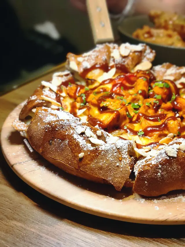 曾經在尖沙咀吃過這間餐廳的pizza 十分好吃,這次來到屯門不知吃什麼好,見到竟然有分店又不用排隊,二話不說和友人一起走進餐廳,心知味道一定不會出錯!🍕薯角炭燒雞肉芝加哥 ($223)這個是必叫!最愛這個餅底軟綿綿,不像一般的Pizza那麼乾身,吃了第一口真的不像吃pizza,以為像吃麵包,但是是非常美味的麵包!口感絕對不會忘記!內含用上雙倍馬蘇里拉芝士、芝士條、忌廉芝士慕絲,芝士熊,簡直是吃到滿足!至於味道是鹹甜鹹甜,鹹味的炭燒雞肉,加上蜜糖杏仁邊,意想不到的配搭,眾人一致認為是這本餐最美味第一名。🍗玫瑰炒年糕炸雞($148)炸雞肉質不會太韌,炸皮也不會太厚。可惜配上的自家製玫瑰香辣醬汁有點太辣而且玫瑰味不夠突出,至於年糕口感煙煙韌韌,剛剛好。🍗蜂蜜蒜泥炸雞配蝦片($139)這個醬汁非常美味,蒜味突出,再加上甜甜的蜂蜜醬,想不到這麼夾和惹味!如果選炸雞的話比較推薦這個口味!🍝煙燻鴨胸泡菜卡邦尼意粉($183)如果想試試辣味的卡邦尼,這是個不錯的選擇,有卡邦尼的鹹味,加是泡菜的辣味,至於鴨胸和意粉的成熟度也是剛剛好。🍟蜂蜜忌廉炸薯條($96)本來對薯條沒有什麼期望,只是打算隨便多叫一個小吃的意思,沒想到所有人吃了第一口之後都贊嘆不已,脆卜卜的粗薯條本身沾了蜜糖和巴馬臣芝士粉本身已經很美味,但配搭了這個的忌廉竟然令這個薯條提升了另一個境界,冰冷的忌廉在口中入口即溶,猶如雪糕和cream cheese般的口感,混和剛出爐的薯條,簡直是出乎意料的美味!…查看更多