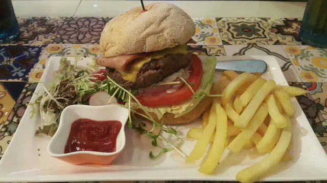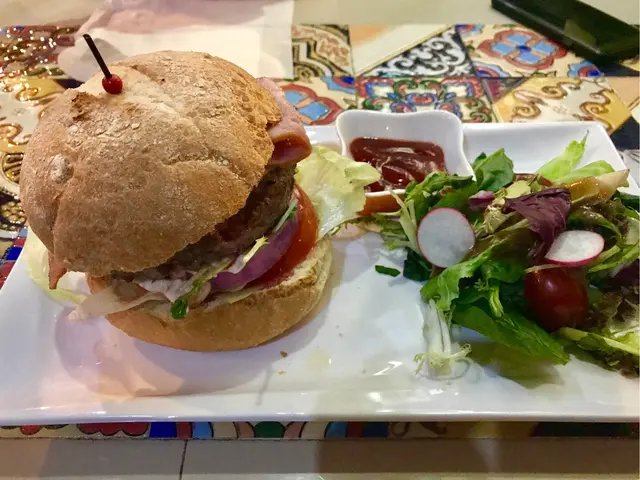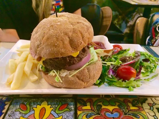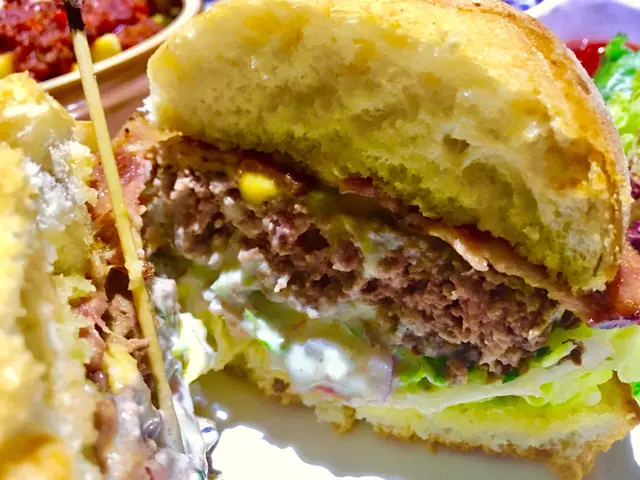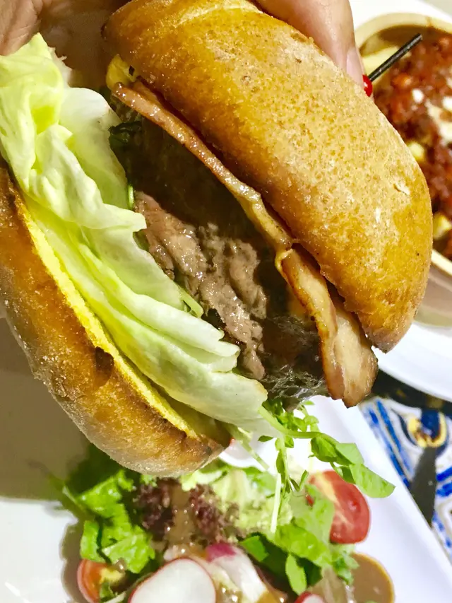 佐敦澳牛對面有間叫Bigger Burger 嘅西餐店,裝修有D外國小餐館嘅感覺,一邊黑膠唱片懐舊feel , 另外一邊用意大利🇮🇹美食地圖作簡介。既然店名Bigger Burger 就一定要試下佢個Burger, 除了漢堡包🍔佢仲有意粉套餐。我地點咗藍芝士煙肉安格斯漢堡餐跟薯條沙律及熱飲。Bigger Burger 所指嘅大D應該是指漢堡排,煎得比較乾身的漢堡排也有成寸厚,配合藍芝士汁及卷起的煙肉和番茄,四寸漢堡包🍔就此誕生了。香煎三文魚粉紅忌廉汁意大利粉餐跟紅湯,法式蒜蓉包及熱飲。煎三文魚幾香口,粉紅忌廉汁係加咗番茄嘅忌廉汁,小小酸配肥美三文剛剛好。…查看更多