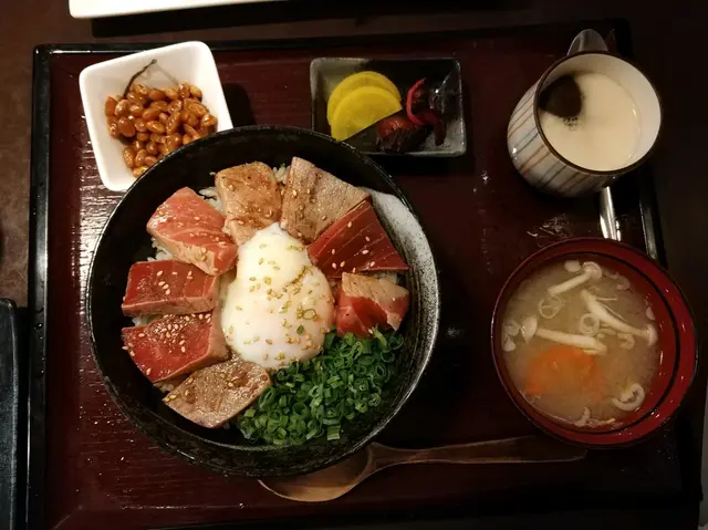 如果你未試過就真係miss out左!真心喺香港食過最美味嘅吞拿魚刺身!吞拿魚魚生控一定要試一下😩❛ 藍鰭吞拿魚扒丼定食 bluefin tuna steak bowl set ($143)藍鰭吞拿魚新鮮同埋夠厚切!肥瘦適中,肉質鮮嫩軟腍,最喜歡吞拿魚扒灼燒嘅味道同埋口感,灼燒過逼到啲油脂出來好香!白飯用上日本米好香綿密濕潤❛ 吞拿魚蓉&三文魚籽丼定食 minced fatty bluefin tuna & salmon roe bowl set ($168)勁厚一層吞拿魚蓉蓋過成碗飯!好誇張!魚蓉鮮嫩肥美,啖啖肉配綿密嘅白飯真係好滿足🥰 三文魚籽鮮甜爆汁,加左隻溫泉蛋 (+$15) 勁大隻同埋滑!撈埋一齊食更滑更美味🤤所有套餐都包茶碗蒸、味噌湯同埋小菜茶碗蒸滑溜多料 – 有軟腍嘅瘦肉同埋蘑菇;味噌湯唔會太鹹有粒粒滑豆腐以呢個價格、質素同埋份量真係好抵食!但係請有心理準備繁忙時段可能要排隊—ʜᴋᴅ $150-200 𝗉𝗉 𝙧𝙚𝙨𝙚𝙧𝙫𝙖𝙩𝙞𝙤𝙣𝙨: no𝙧𝙚𝙫𝙞𝙨𝙞𝙩? yes𝙤𝙫𝙚𝙧𝙖𝙡𝙡: 8/10—📍 定食 Doraya尖沙咀厚福街8號H8 6樓…查看更多