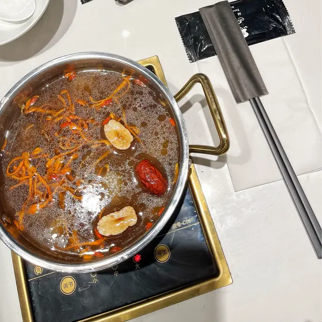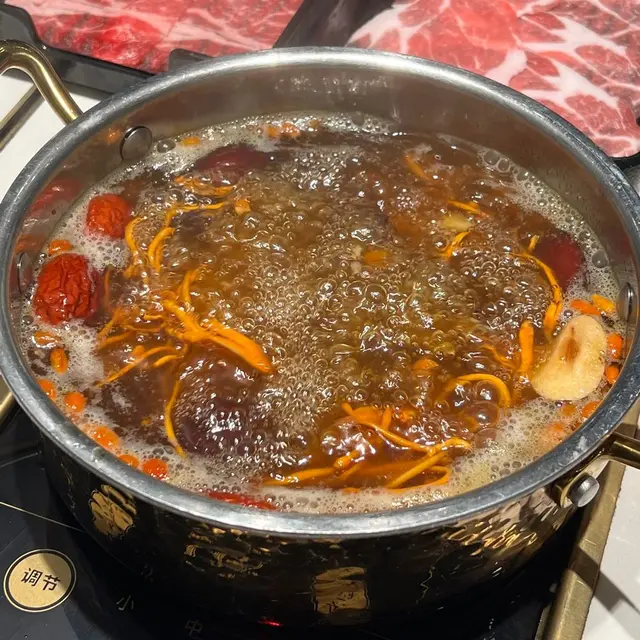 天氣濕濕冷冷最好就打邊爐,今晚同同事一收工就去圍爐取暖,哈!餐廳環境光猛企理,有多排卡座,亦有唔少四人枱,寬敞闊落,坐得好舒適。中央位置集中咗自助食物區、飲品區、醬料區和雪糕區,好方便。全日120分鐘藥膳火鍋放題,有六款套餐選擇,揀咗Prime Grade 牛肩胛放題套餐($233/成人位),而一人一鍋就係十二款中要咗藥膳田園蕃茄濃湯和藥膳蟲草花桃膠雞湯。藥膳田園蕃茄濃湯蕃味香濃,酸咪咪好醒胃;藥膳蟲草花桃膠雞湯有齊紅棗、杞子蟲草花等食材,滋補養生。飲品極多選擇,有凍有暖,貼心!除咗一般常見的飲品外,仲有多款未見過的台灣飲品添!黑糖薑母茶好夠薑,唔太甜;水蜜桃汁味道香甜。Prime Grade 牛肩胛放題套餐包有Prime Grade 牛肩胛肉和西班牙無激素豬肉片,兩者肉質亮澤紅潤,肉嫩鮮香,特別是牛肩胛肉,嫩肉中夾有油脂,牛味濃,優質!自助區有好多款食物選擇,肉類有台灣沙茶牛肉、雞腿肉和深海魚柳,三款都好嫩滑,最鍾意係牛肉,入味腍嫩,正!還有大量特式台灣食材,如花枝丸、奶油南瓜包、甜不辣、手打牛丸、芋頭貢丸、芝士小籠包、芥末魚籽丸、台灣腸、燕餃、烏冬、米粉等等,各具特色。我就挾了一大盤,差唔多樣樣試齊,最喜歡係有夾心的丸,好味!蔬菜瓜果類都唔少,有油麥菜、羽衣甘藍、皇帝菜、粟米、海帶結、萵荀、豆卜、雜菌等等,都係挾了一大盤,款款都好新鮮,質素佳!雪糕冰條甜筒款式好多,有名牌嘅movenpick、Dreyers、da dino、還有香港品牌等,我倆各食咗三杯,大滿足!…查看更多