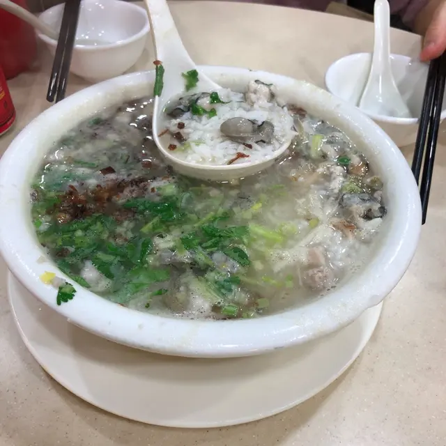 今日清明節鋪入邊唔算好旺。。一行入去就有位。。雖然套餐係抵食啲兩個人只不過228 。。但係我留意左右隔離都冇乜人叫。。可能同我諗法差唔多就係唔啱食😅最後我哋兩個人散叫咗鵝片90。。勝瓜炒鮮尤80。。蠔仔粥一碗40。。啤酒🍻28。。白飯11。。鵝片其實有點失望。。個滷水汁淨係有個鹹字。。完全冇滷水果種香味😔😔😔。。呢樣就好失望囉以前都唔係咁。。反而蠔仔粥吾錯。。上枱時夠滾👍。。蠔仔料料飽滿