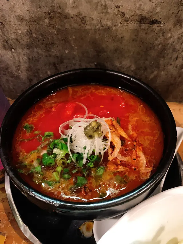 今日午餐突然想食蝦湯拉麵,就去咗拉麵陳間鋪😊🍜低調嘅門面指(招牌都冇)…室內簡簡單單嘅裝修,唔需要鋪大只有10幾個位就足夠,有穩定嘅出品…就好小會輸😏所有條件一路以嚟,都係我覺得開鋪打頭陣嘅做法👍🏻👍🏻👍🏻可惜我唔係做廚師🧑🏻🍳只可食掙扎緊🥹食味噌還是蕃茄味好…結果選了🍅因為未試過🦐+🍅=🍜😌開頭食咗2啖覺得冇咩特別,但竟然越食越好食🤔個湯有蝦油,鮮茄同茄汁唔會太酸岩岩好,而又食到好鮮嘅蝦味😋麵掛湯力超強下次可以去CWB試埋蠔湯🦪