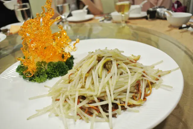 位於天后地鐡站出口的御名軒,其實擁有上佳的地理位置,因為實在只有十幾步的距離,真的很方便就腳。大堂闊落典雅,而且設有廂房,一大班人想靜局一點都不成問題。今次跟一班食友來到店內試菜,先來一個虎乳靈芝海底椰燉豬展(四位用$168) ,花上四小時去隔水清燉,湯料有虎乳靈芝、豬展及海底椰;喝起來清潤順滑,鮮甜美味,很好喝。再來是蟲草花炒大連鮮鮑($198) ,先把鮑魚切絲,用上大量銀芽及蟲草花清炒,無疑銀芽太多,而鮑魚份量太少,但時間恰到好處,所以並未有大量出水的表現,還可以吧!蜂蜜炭燒鰻魚($130)用上明火燒烤,外層微脆,蜜汁已經滲入鰻魚肉內,咬起來煙韌彈牙,口感非常好,但只得一件,未免太少了。至於蟹籽元貝滑西施($138),先將蛋白蒸熟,再把帶子切開舖好,淋上玻璃芡,只是蛋白蒸得略微過火,還可以更嫩滑一些。竹翠銀杏($78)其實是炒五秀,用上時令的菜蔬,包括西芹、蓮藕、銀杏、雲耳、榆耳及鮮白合,賣相清麗,清新爽朗。用上新鮮雞處理的鹽燒芝麻脆雞($250須預訂),雞皮真的很薄,但很脆口,就連雞肉亦保持嫩滑,水準很高,不過客人未必知道是新鮮雞,最好是連內臟都用鹽燒處理好,一併放上碟。如果跟你說燕窩紅棗糕 ($48四件)是功夫菜,大概是很難想像得到,把新疆大紅棗用慢火燉一日,加入木薯粉及糯米粉搓揉而成,做成深淺相間的顏色,最後再放燕窩上面,賣相亮麗,入口柔韌,而且富有紅棗的微酸,很有特色的甜品。其實自己將整個菜單打過價,不含酒水加一,竟然不到$1300,就算學生擺謝師宴時也不會覺得吃力啊!…查看更多